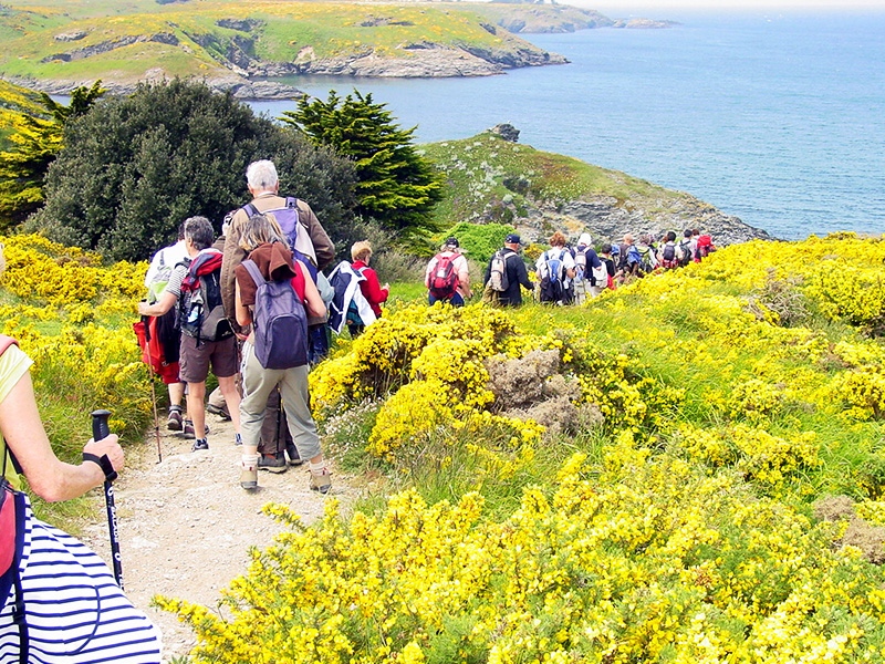 Le lendemain, nous faisons connaissance de notre guide, Serge, qui saura s’adapter à nos demandes en fonction des choix des bons marcheurs et de ceux qui préfèrent aller moins loin mais profiter plus lentement du chemin côtier. Ce dimanche, le car nous emmène au-delà de Concarneau à Kérascoët, nous marchons enfin sur ce GR 34 qui suit la côte bretonne du Mont-Saint-Michel à Saint-Nazaire.