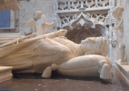 Nous longeons l’océan vers le Nord, arrêt à la chapelle Notre-Dame-de-la-Joie, édifiée en gratitude envers la Vierge qui a protégé les marins dans les tempêtes. Il faut dire que ces dernières sont violentes en ces lieux, en 1888 pendant une forte tempête, la mer franchissait le mur qui protège la chapelle, il faut remonter ce mur tous les trente ans… C’est le lieu d’un Pardon le 15 août. Nous arrivons au port de Saint-Guénolé où se trouvent hangars et pêcheries d’activités maritimes (dont de bonnes conserveries !) et nous continuons de longer la côte au-dessus des rochers de Saint-Guénolé, sculptés par la mer de formes bizarres qui alimentent force légendes, mais où se sont aussi déroulés des drames tant l’endroit est dangereux. Ce jour la mer est magnifiquement bleue, la marée montante fait de l’écume sur les récifs, les rochers ont des formes fantastiques, c’est un moment de beauté absolue. Et juste avant la plage de Pors Carn, une aire de pique-nique nous attend, d’où l’on voit la pointe de la Torche, bien connue des surfeurs. Un groupe d’enfants sont prêts pour une compétition sur l’eau…