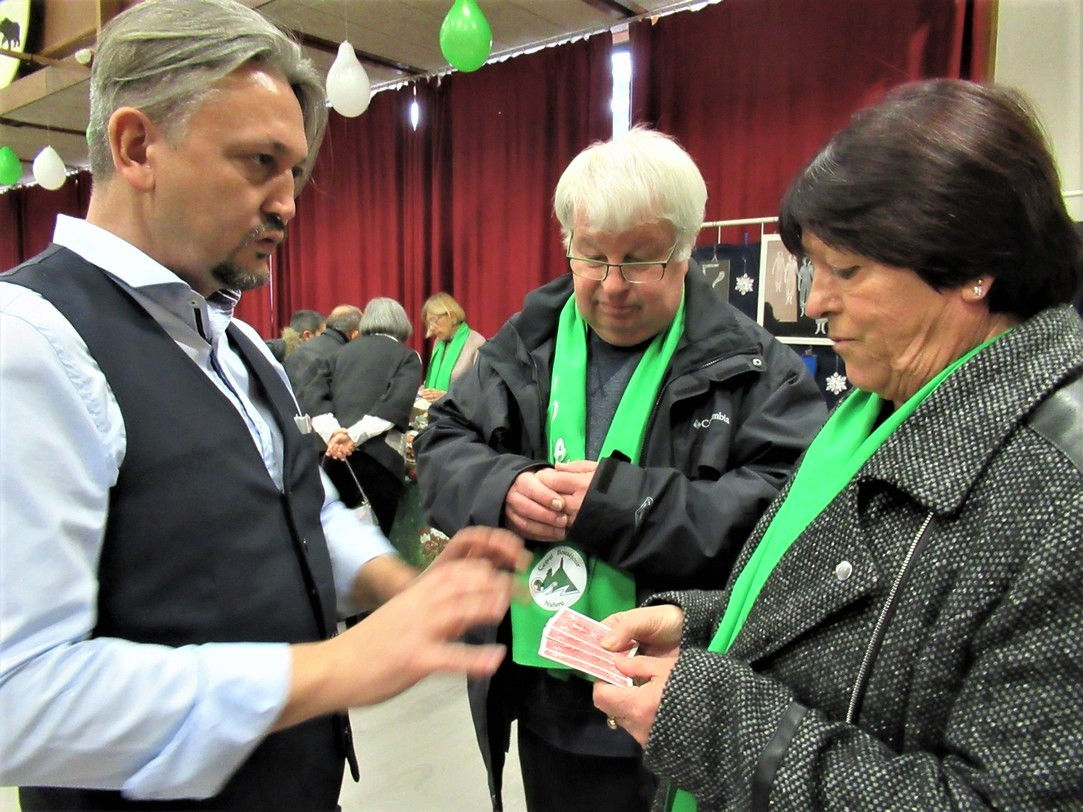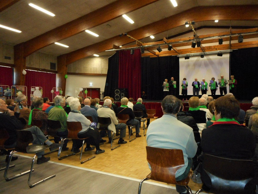 Pour clore le spectacle, la chorale improvisée remonte sur scène (en tenue de marcheur) pour une dernière chanson dédiée à CBN. Suit une remise de cadeaux à nos accompagnateurs, à notre président pour son investissement, les remerciements à tous ceux qui ont participé à la réalisation de cette journée anniversaire. Puis il est l’heure de ranger la salle pour que le traiteur puisse dresser les tables pour le repas.