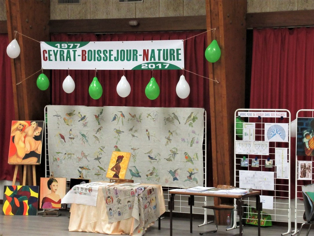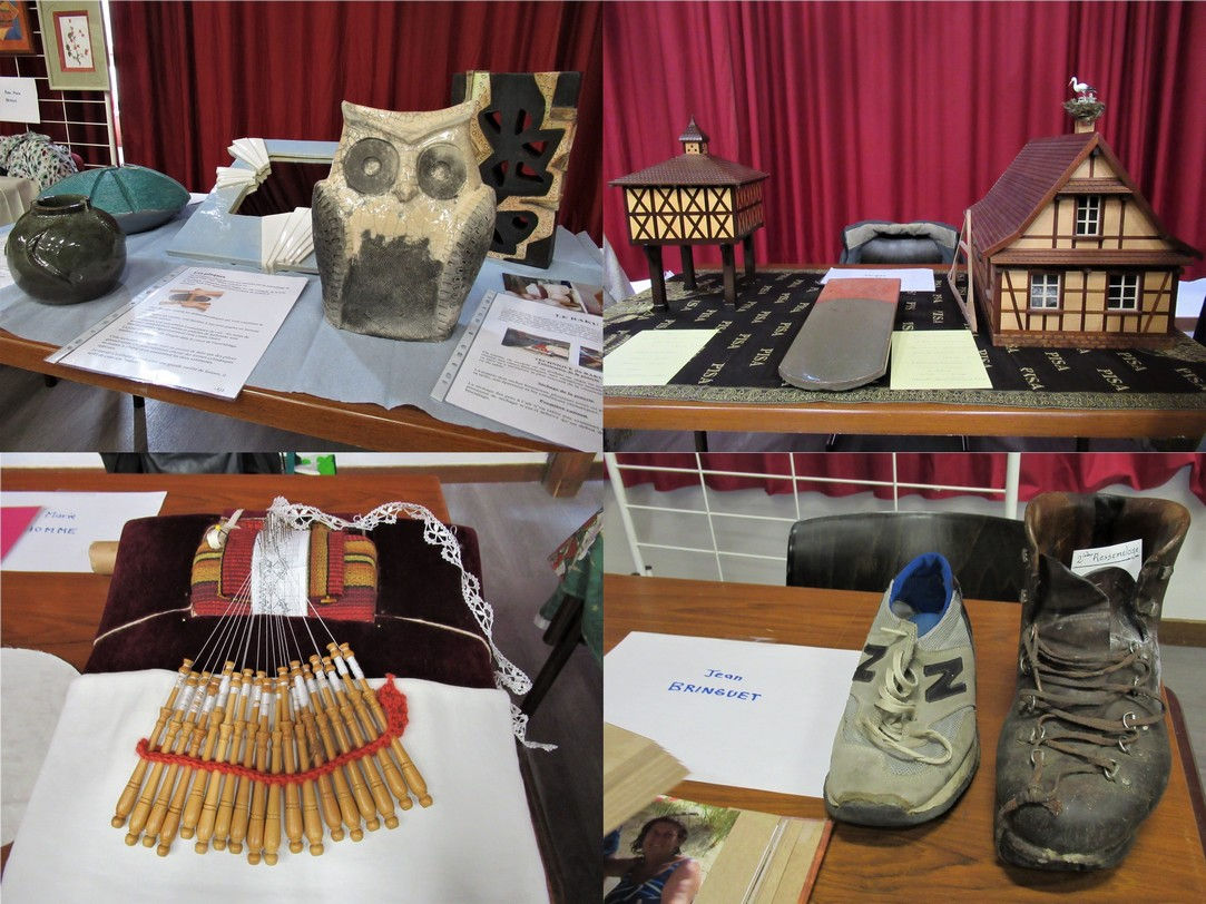 Parmi les stands des exposants (membres de CBN), on peut admirer le talent, la passion, la dextérité de chacun. Nous découvrons : des patchworks, des peintures (huile, acrylique, aquarelles), de la broderie à points comptés, des paniers en osiers, des réalisations en bois tourné et maquettes en bois de différentes essences, des vêtements fait main, des céramiques, cadres et boîtes en carton habillé, une collection de casques de soldats de la dernière guerre et une de coussins ou carreaux de dentelles aux fuseaux de différents pays, des réalisations de dentelles aux fuseaux, de magnifiques photos sur la nature, maints documents en généalogie, du scrapbooking, peinture vitrail sur verre et bijoux en pâte fimo, une table est dédiée à CBN avec album photos…