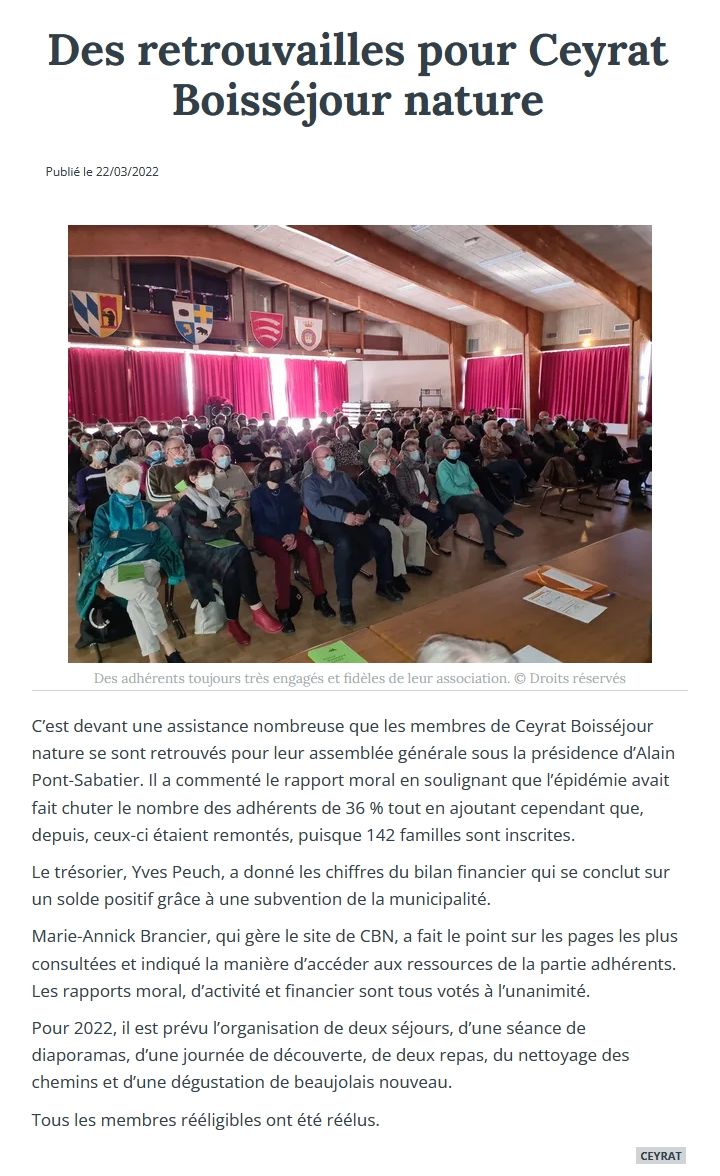 Assemblée Générale de Ceyrat Boisséjour Nature