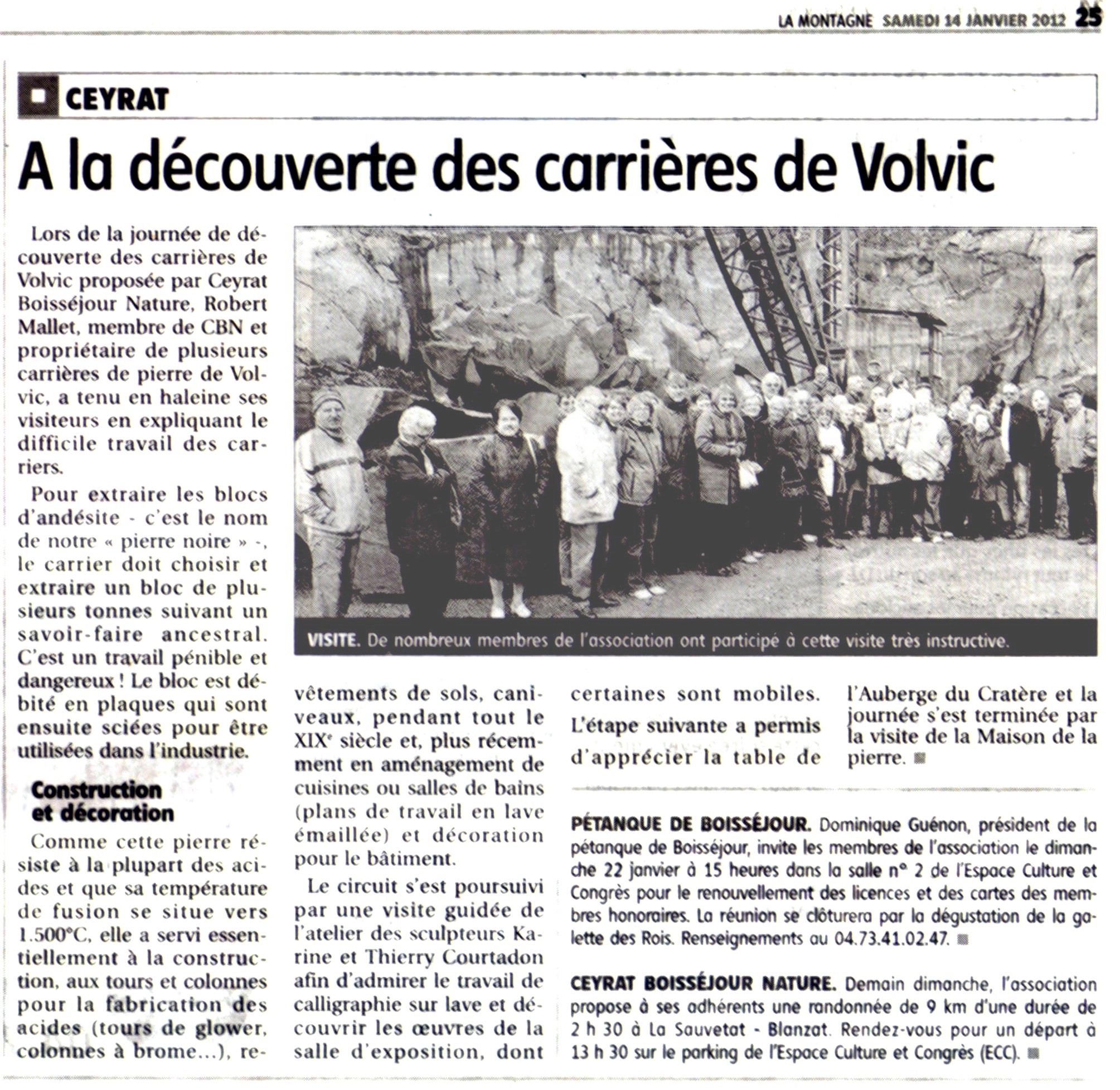 La Montagne - 14/01/2012 - A la découverte des carrières de Volvic