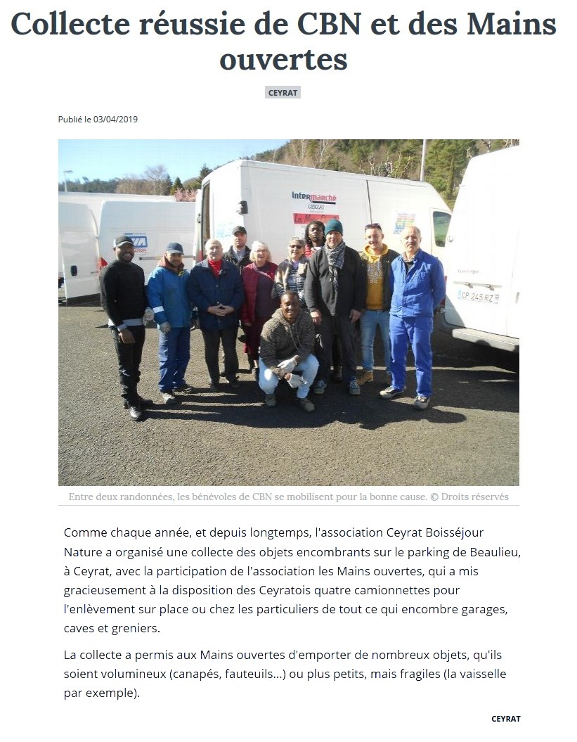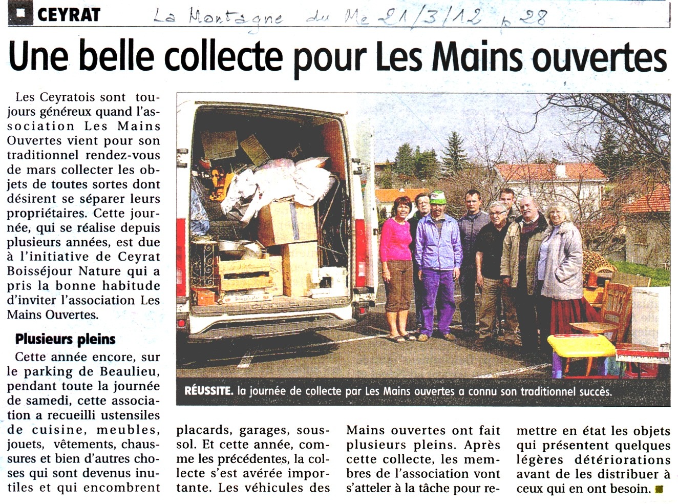La Montagne - 21/03/2012 - Belle collecte pour les « Mains ouvertes »