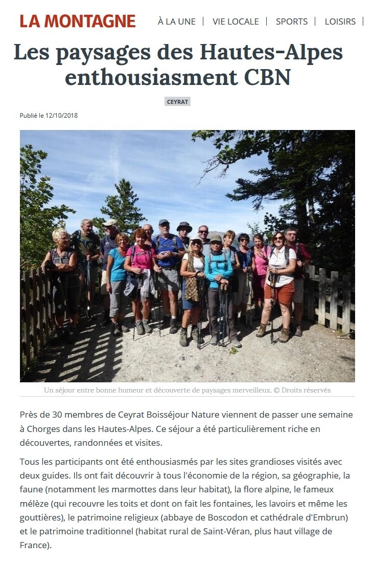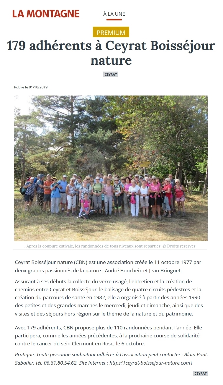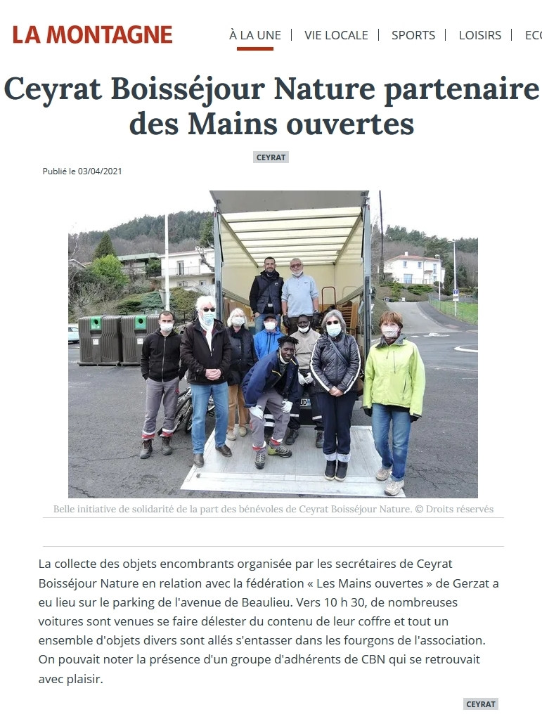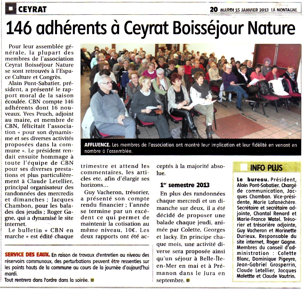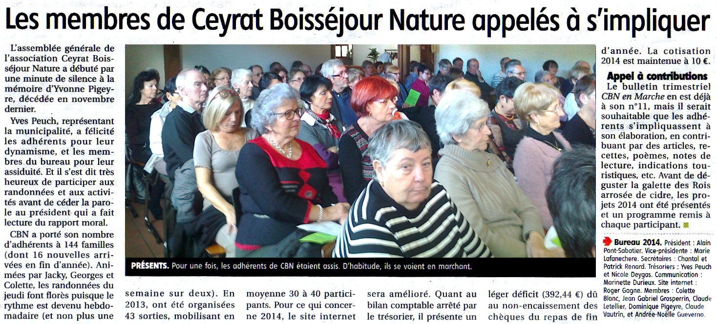 La Montagne - 19/01/2014 - Les membres de Ceyrat Boisséjour Nature appelés à s’impliquer