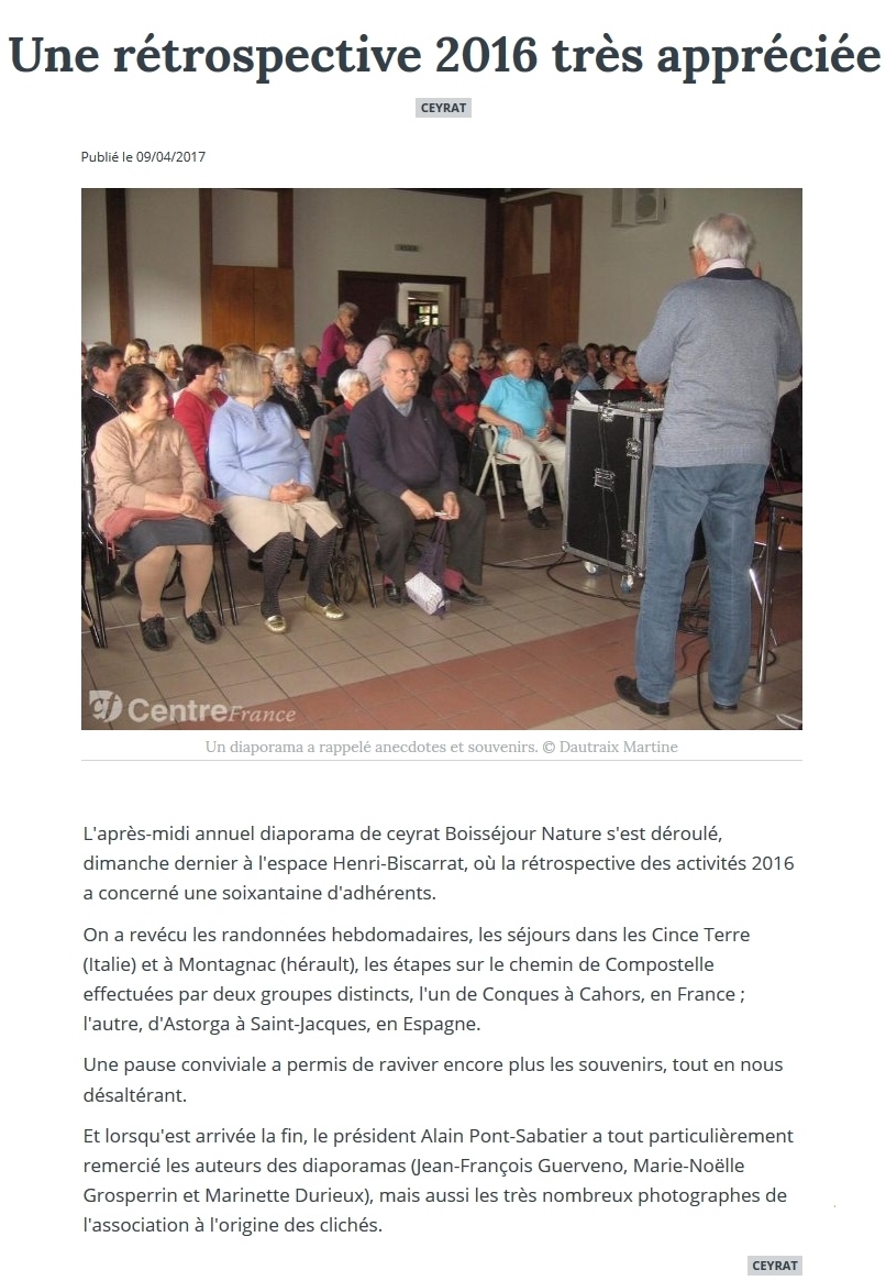 La Montagne - 09/04/2017 - Une rétrospective 2016 très appréciée