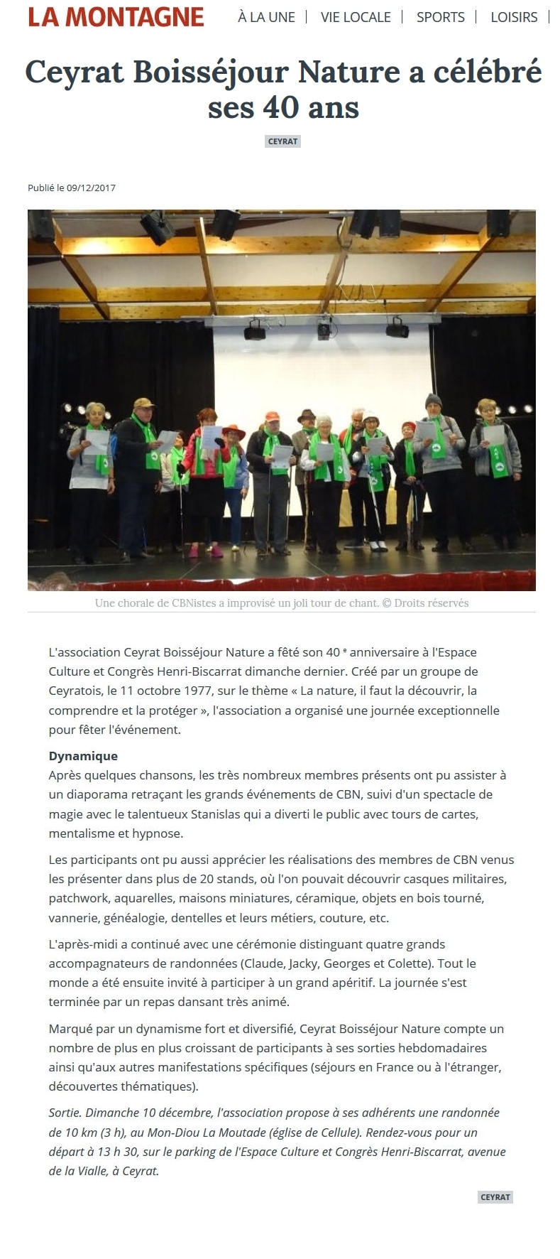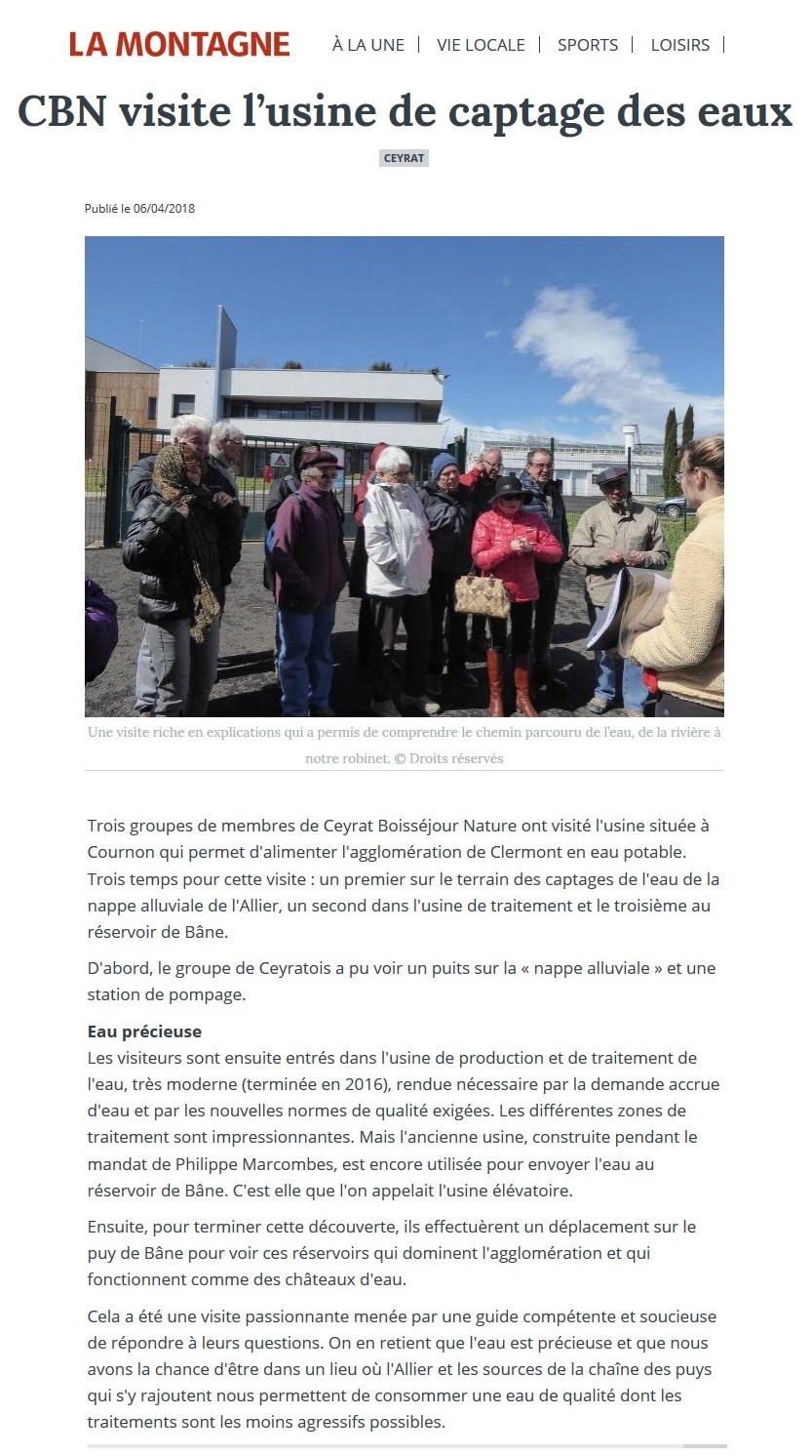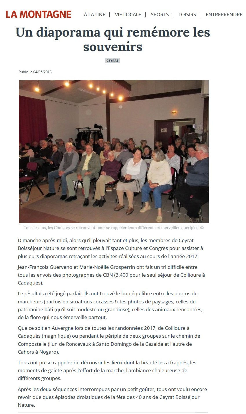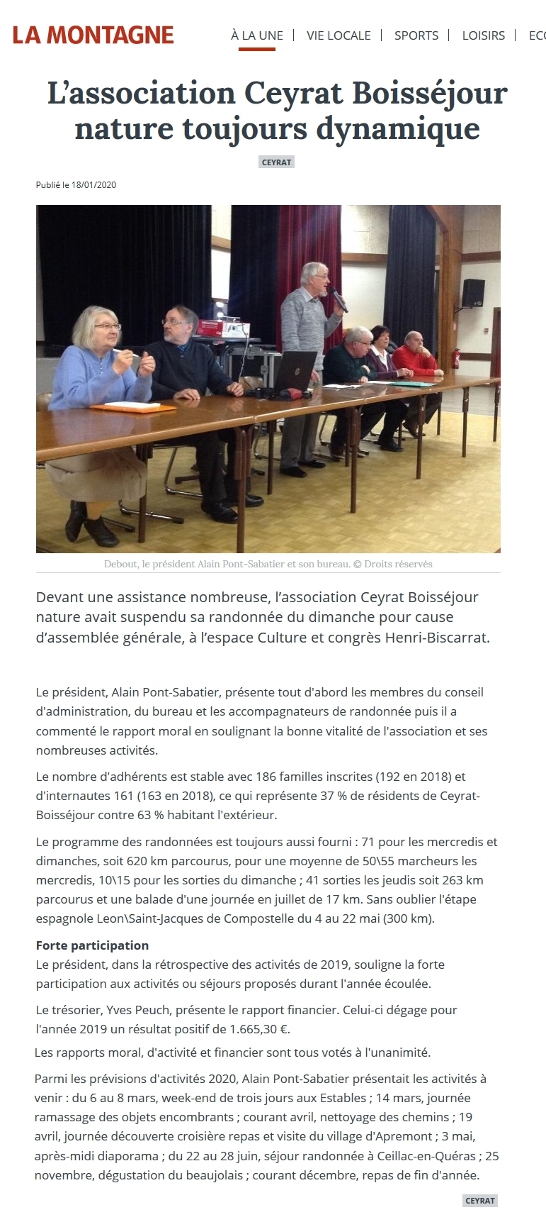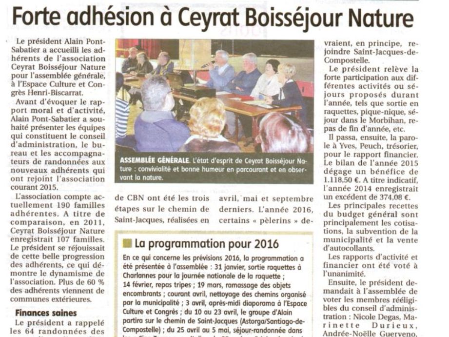 La Montagne - 26/01/2017 - Assemblée Générale de Ceyrat Boisséjour Nature