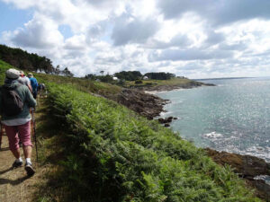 Le lendemain, nous faisons connaissance de notre guide, Serge, qui saura s’adapter à nos demandes en fonction des choix des bons marcheurs et de ceux qui préfèrent aller moins loin mais profiter plus lentement du chemin côtier. Ce dimanche, le car nous emmène au-delà de Concarneau à Kérascoët, nous marchons enfin sur ce GR 34 qui suit la côte bretonne du Mont-Saint-Michel à Saint-Nazaire.