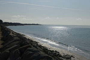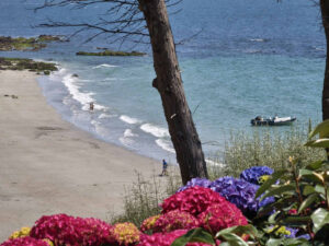 Il faut partir de bonne heure ce 14 juin, nous allons loin, sur la côte Sud de la péninsule bretonne. Thomas nous attend déjà, nous chargeons les bagages et partons à l’heure dite. Voyage serein, pendant lequel le temps s’améliore d’heure en heure : le « grand beau » ne nous quittera plus de tout le séjour. Qui a dit qu’il pleuvait en Bretagne ? Nous arrivons à Fouesnant à 17 h 30, comme prévu, et nous installons dans les petites maisons du VVF. Et puis, le pot d’accueil, et le repas : moules-frites ! Mais nous n’avons vu la mer que de loin en loin sur le trajet, et la plage est à un quart d’heure de marche. Le repas à peine terminé, nous allons prendre contact avec l’océan, les plus courageux iront au retour des randos faire un petit plongeon dans une eau qu’ils disent « bonne ».