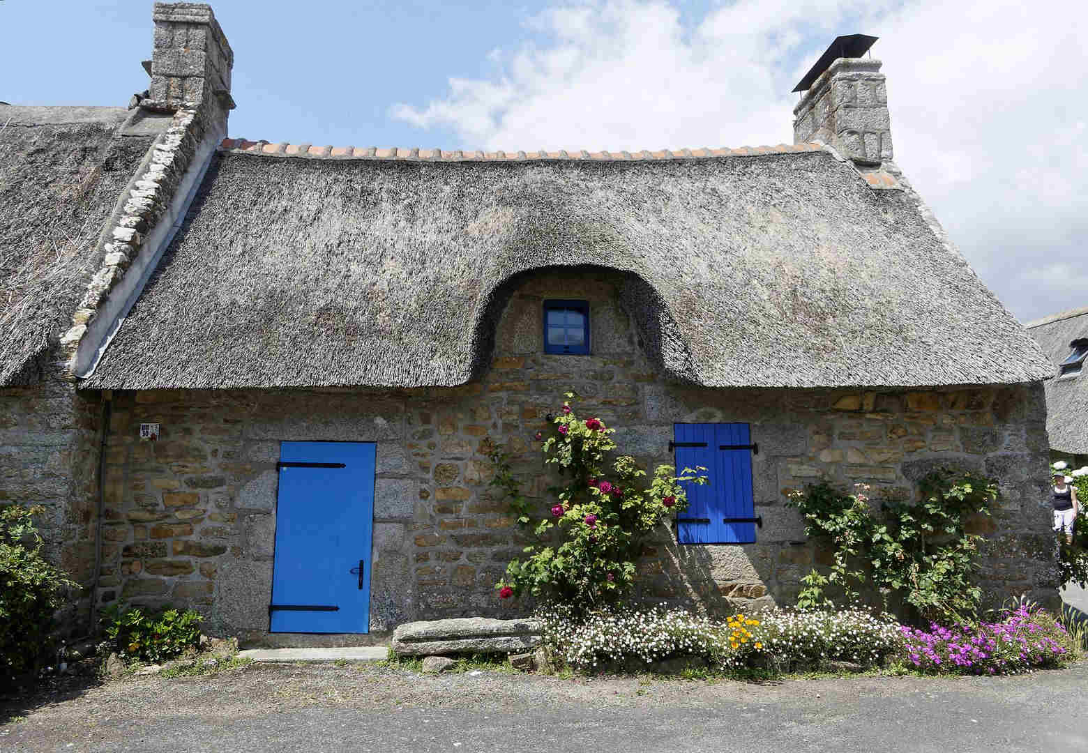 Quand nous reprenons le car, c’est pour aller dans le village de Kérascoët et marcher au milieu des maisons à toits de chaume (ou faire une pause pour se rafraîchir…). Sur la route du retour, nous ne pouvons pas nous arrêter à la pointe de Trévignon tant il y a de voitures (un dimanche !), mais nous avons quand même vue sur le château et longtemps sur le bord de mer en revenant par Concarneau : première journée magnifique ! Les nageurs goûtent l’eau de la plage de Kerler, le repas du soir donne toujours le choix entre viande et poisson (ou les deux !) et la soirée se prolonge puisque le soleil se couche tard à cette latitude…