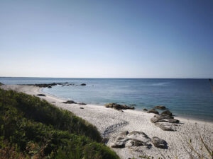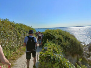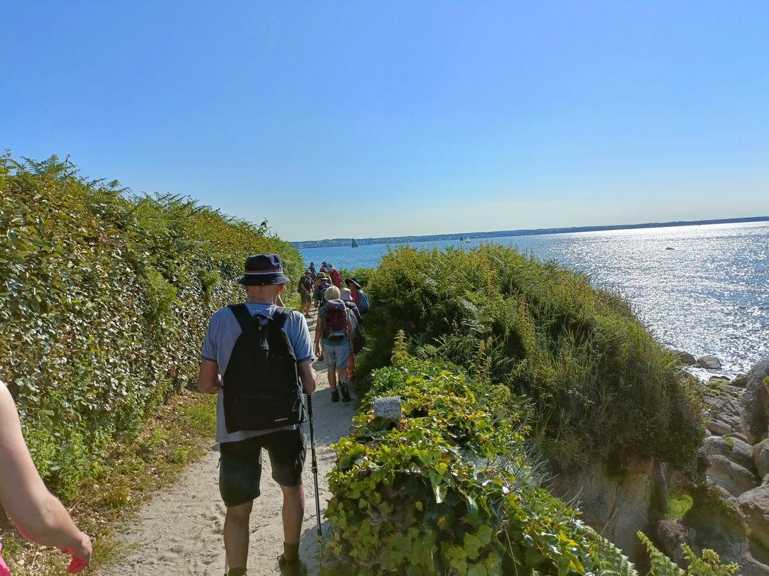 (cachées derrière les arbres mais qui ont toutes une descente privée sur les criques). Un groupe va jusqu’à la plage du Cap-Coz et s’arrête en vue du phare, l’autre va un peu moins loin pour pique-niquer.