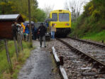 Nous nous installons dans un bel autorail jaune (fleur de gentiane…) et attendons le départ au coup de sifflet. Nous allons emprunter la voie ferrée Bort-Neussargues, construite au XIX ème.