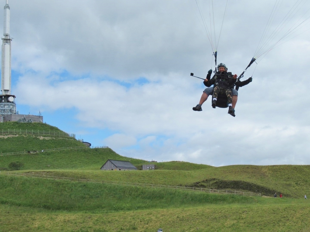 Juste une fraction de seconde, un peu d’effroi au moment où mes pieds quittent le sol ferme et je vole. J’ai des sangles partout, dans lesquelles dois-je enfiler mes bras ? Le moniteur me coince le bras gauche… et c’est parti pour vivre un moment fantastique.