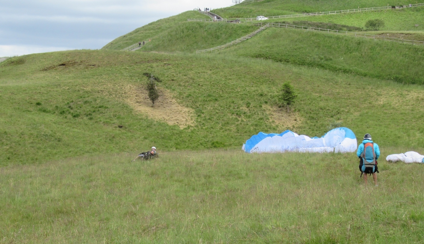 Ayant déjà fait de l’ULM à Sète et de la Montgolfière, j’étais très attirée par un vol biplace en parapente à partir du sommet du Puy De Dôme. Inscription en août 2019, maintes annulations en raison de la météo, un méchant virus… Le PDD est très pratique pour cette activité car le départ et le retour se font au sommet. Donc on peut y aller soit par le p’tit train soit par le sentier des Muletiers et redescendre par le chemin des Chèvres.