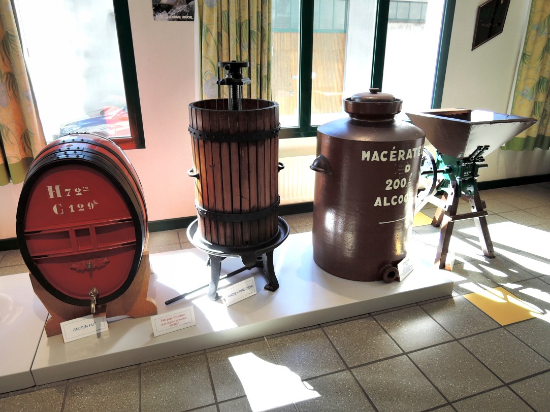 Situé à 100 mètres de la fromagerie, l’Espace Avèze est beaucoup moins important, mais pas moins intéressant. C’est vers 1928 qu’Emile Refouvelet fait ses premiers essais en vue de la création d’un apéritif à base de gentiane qu’il appellera “Auvergne Gentiane” La marque “Avèze”, crée en 1962, est aujourd’hui la propriété d’Avèze SAS basée à Riom. L’espace de communication ouvert au public est à la fois intéressant et instructif tant par les tableaux explicatifs que les outils et matériels présentés. Voila une plante – la gentiane – qui fait ses premières fleurs à 10 ans et qui peut vivre jusqu’à plus de 50 ans. Considérée comme parasite par les agriculteurs car elle prend la place de l’herbage des vaches, c’est volontiers – mais néanmoins contre rémunération (car un chou est un chou !) – qu’ils autorisent son arrachage de juin à octobre par les “gençanaïres”. Après triage, lavage et essorage des 1500 à 2000 tonnes de racines récoltées, elles sont réduites en “cosettes” et mises à macérer durant 9 mois pour donner les alcoolats aux vertus multiples qui composent l’Avèze. Après avoir vu les fourches du diable utilisées pour extraire les racines, appris que l’on commence à cultiver des champs de gentiane et visionné un belle vidéo, c’est avec plaisir – surtout à l’heure de l’apéritif – qu’on répond à l’invitation à déguster et comparer les diverses variétés d’Avèze.
