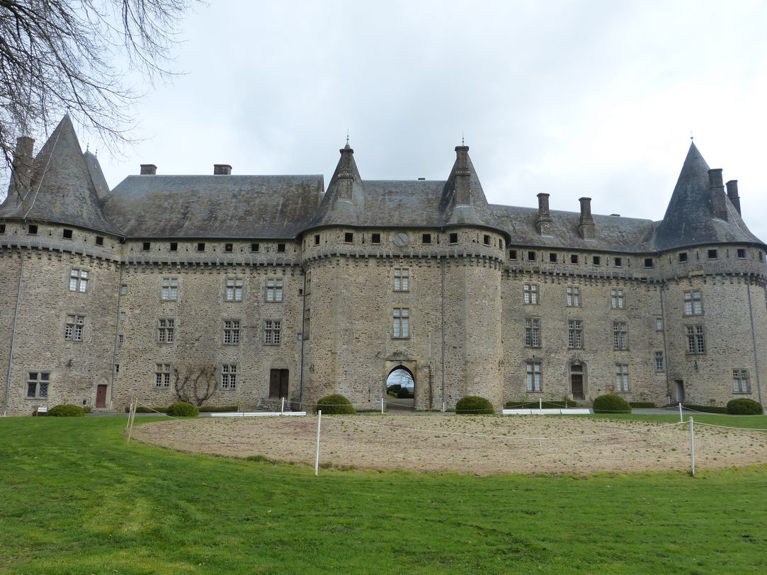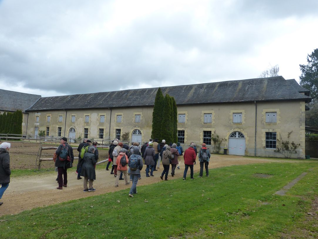 Après avoir marché sous un soleil presque d’été la semaine, il fait bien frais à 7 h ce dimanche mais nous sommes 42 au rendez-vous avec Jean-Michel qui nous conduira en Corrèze. Un peu de pluie sur le trajet, et même en arrivant devant l’impressionnant château de Pompadour, mais le soleil va finir par nous accompagner, même s’il ne nous réchauffe pas beaucoup encore. Après avoir quitté les autoroutes, nous nous sommes enfoncés dans la campagne corrézienne : des forêts à l’infini, des étangs, peu d’habitat, des petites routes plus ou moins accidentées avant d’apercevoir la masse imposante du château dont nous allons faire une visite historique puis équestre, puisque Pompadour abrite les haras nationaux.