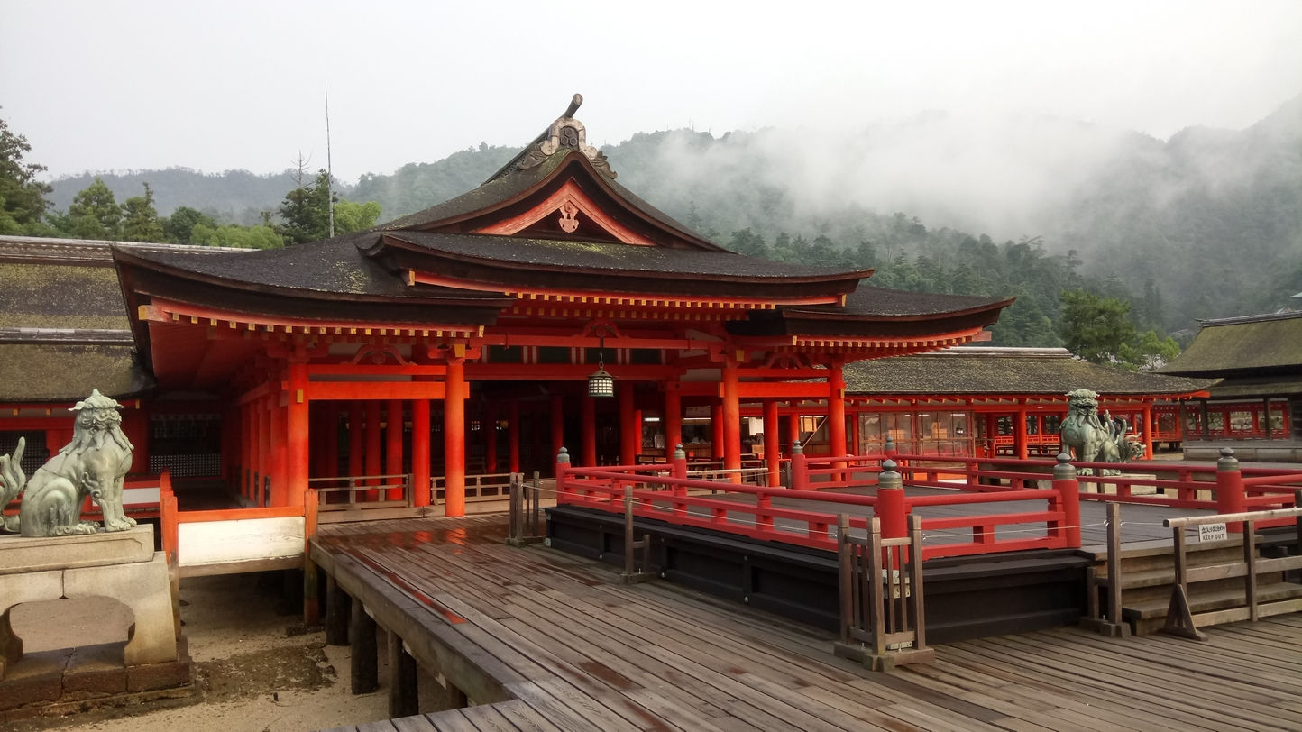 Après son introduction au Japon vers les Vème et VIème siècles, le Bouddhisme s’est mêlé à la religion autochtone, le Shintoïsme. Le sanctuaire d’Itsukushima aurait été construit dès 593, puis repris en 1168 ; la majorité des bâtiments ont été construits durant l’époque Heian, mais détruits par des incendies, les bâtiments actuels datent de 1571.