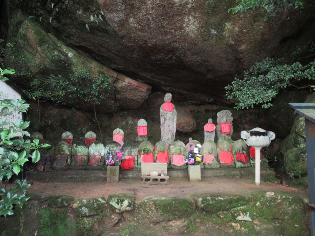 Sur le chemin, on croise des petits bouddhas, des rochers « magiques », dont le Kuguri iwa, le « rocher “arche”, formé naturellement par d’énormes rochers. Le franchir est un passage obligé pour accéder au sommet du Mont Misen.