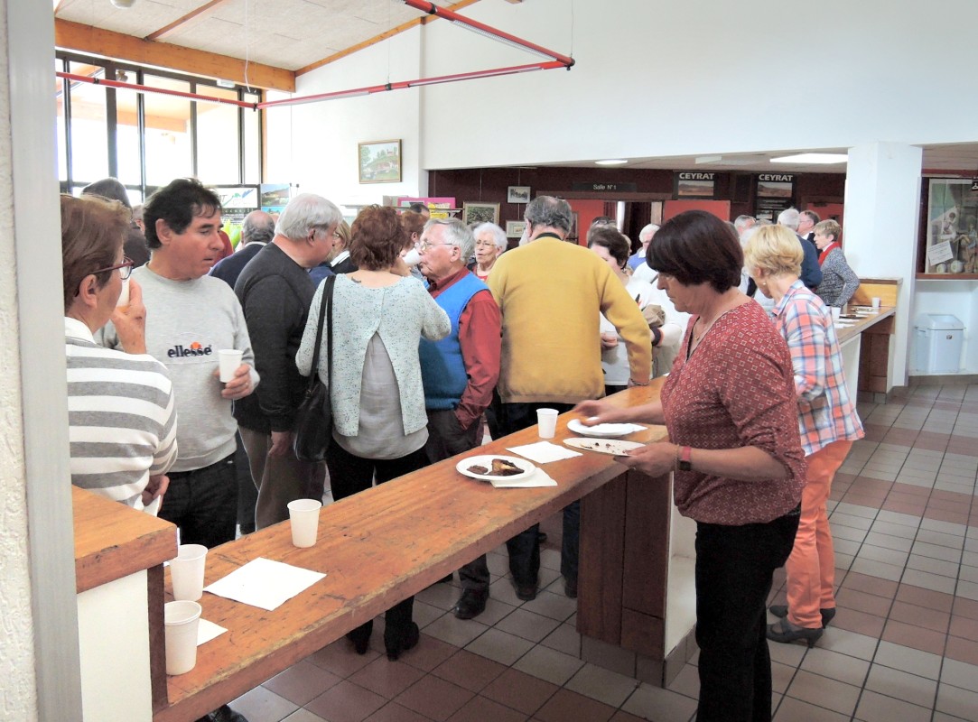 C’est sur un air de bourrée qu’Alain, notre Président, souhaita la bienvenue à la soixantaine de CBNistes réunis autour d’un kir ! L’esquisse de cette danse auvergnate annonçait le début des réjouissances. L’appétit ouvert par une terrine de gibier, tous ont apprécié la potée savoureuse et copieusement servie, et beaucoup ont voulu goûter après les desserts aux “douceurs” présentées par Marinette et Jacky … Les conversations amicales allaient bon train à toutes les tables ; la bonne humeur était partout ! Merci à tous de votre chaleureuse présence !