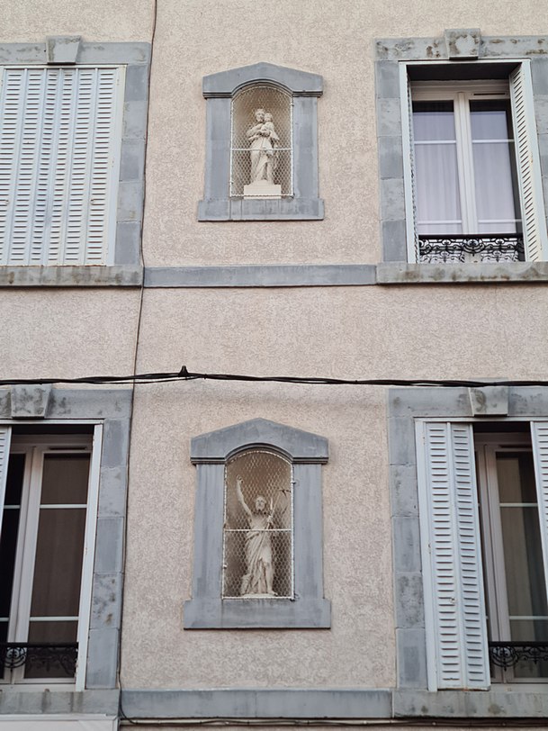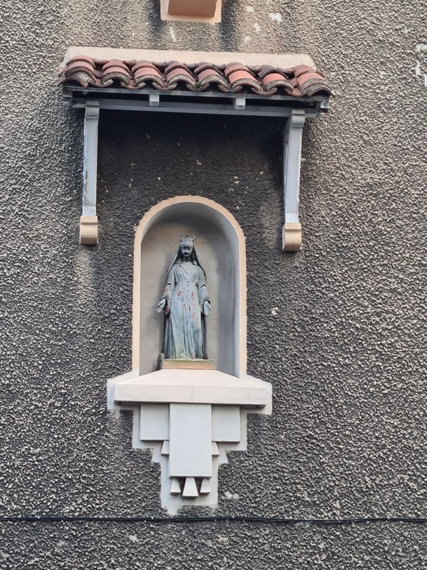 10°) Dans une niche protégée par une grille, une vierge semble saluer tous ceux qui passent avec un regard bienveillant. L’avez-vous déjà remarquée ? Sinon, trouvez-en le lieu.