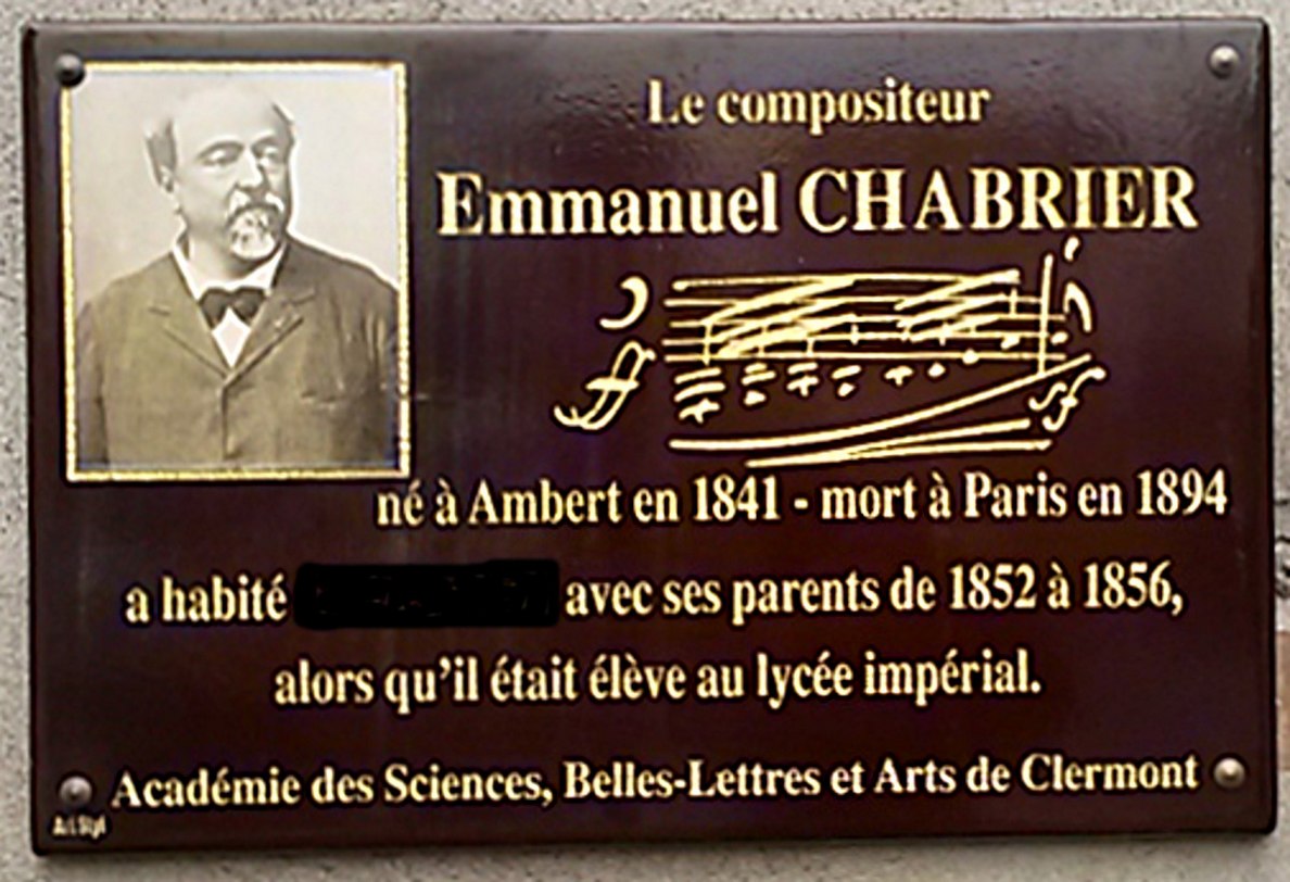 9°) Cette plaque rappelle que le compositeur Emmanuel Chabrier a habité Clermont-Ferrand avec ses parents. Mais où était leur domicile ?