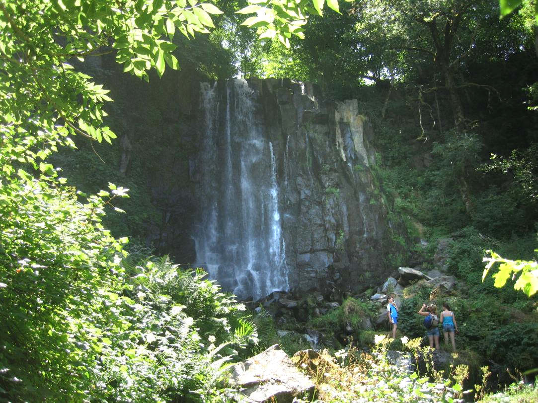 Bientôt une belle hêtraie, et nous descendons en zigzag une pente assez raide jusqu’à la Cascade de Vaucoux. Une passerelle en bois enjambe le ruisseau et permet un très beau point de vue sur cette chute d’eau impressionnante d’environ 12 mètres de haut.
