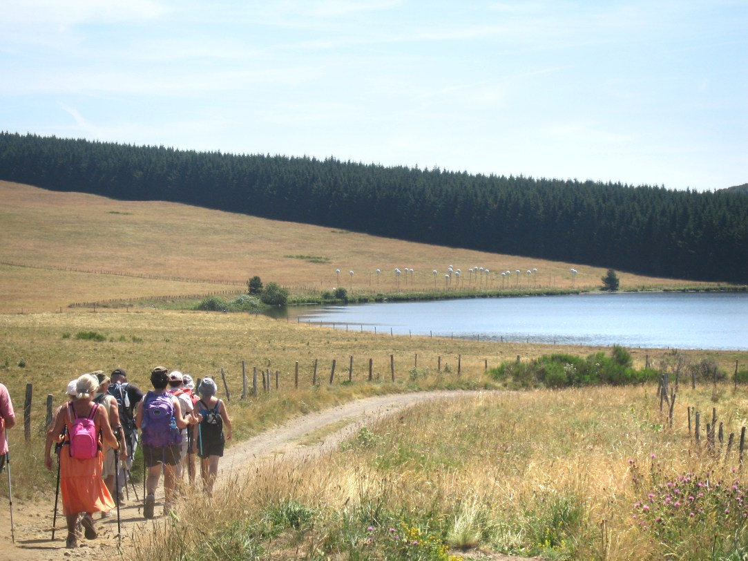 Tout en avançant d’un bon pas car la route est facile (et que la faim commence à se faire sentir), nous atteignons le lac de Bourdouze, merveille du Cézallier, installé dans une dépression glaciaire. Dominé lui aussi par puy de Montcineyre, il est peu profond, mais s’étend sur environ 40 hectares !