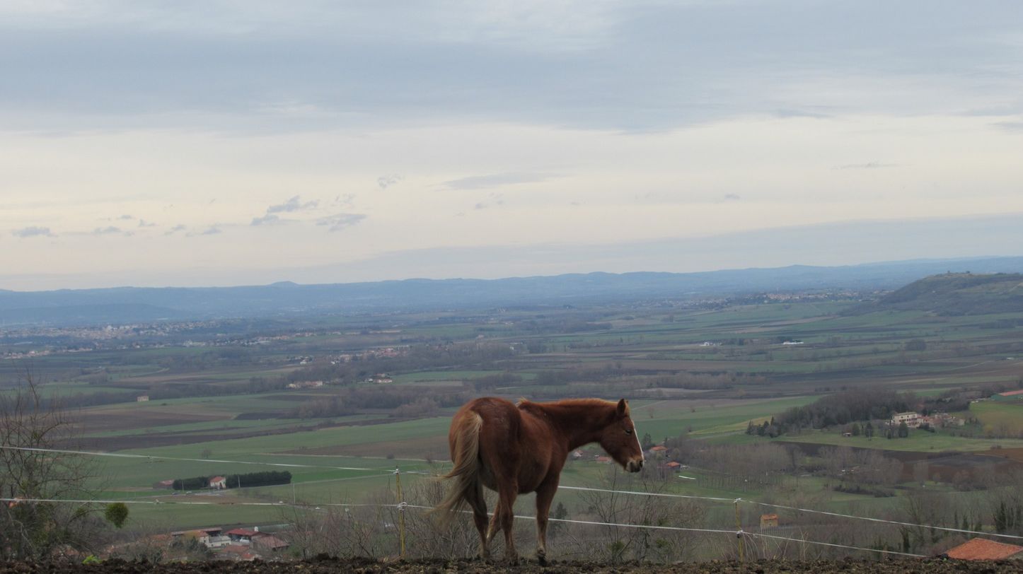 Dimanche 05 janvier : L’ancienne gare est devenue une maison médicale, mais elle a gardé son aspect familier avec le nom écrit sur le côté que l’on voyait du train : JOZE. La ligne allait de Maringues à Gerzat et servait à l’importante production agricole. C’est que nous sommes dans la très riche Limagne. Nous prenons vers le Nord de très larges chemins au milieu des vastes terrains de culture, soit à la terre fraîchement retournée, soit encore encombrés des galets que l’Allier a dû charrier là il y a bien longtemps. A la hauteur de St Laure, nous passons au milieu des étangs, anciennes sablières, et revenons par Tissonnières, un village tout en longueur au bord de l’Allier qui fait ici de grands méandres. Ses galets ornent le mur des maisons, on voit Bassinet et Culhat sur la rive droite. Mais le paysage est partout bien plus lointain : les Dômes; la Toscane auvergnate, et au milieu des cultures, des pigeonniers, des hangars à tabac et beaucoup de chevaux et d’ânes ! Un circuit sans difficulté de début d’année, merci Claude !