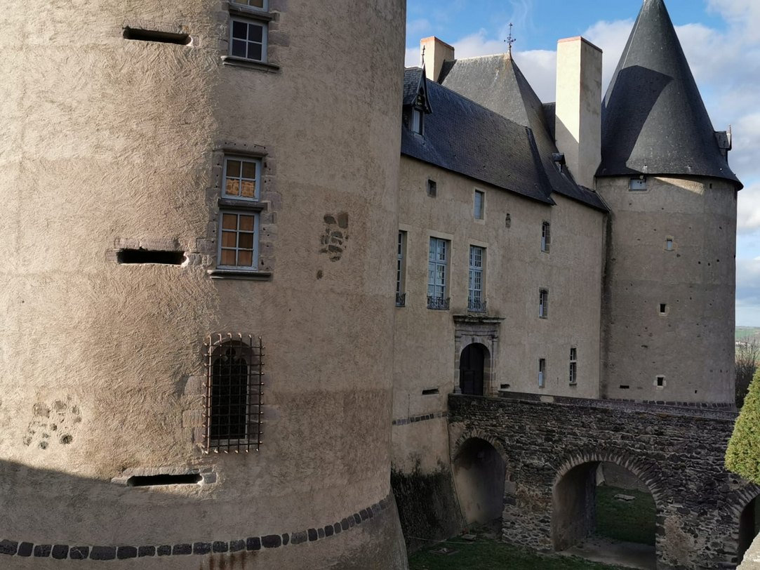 Nous pourrons voir, d’abord les extérieurs (la ferme et son joli pigeonnier, un pédiluve), puis, en traversant la cour : la façade du château, la terrasse et sa curieuse petite échauguette, les jardins…