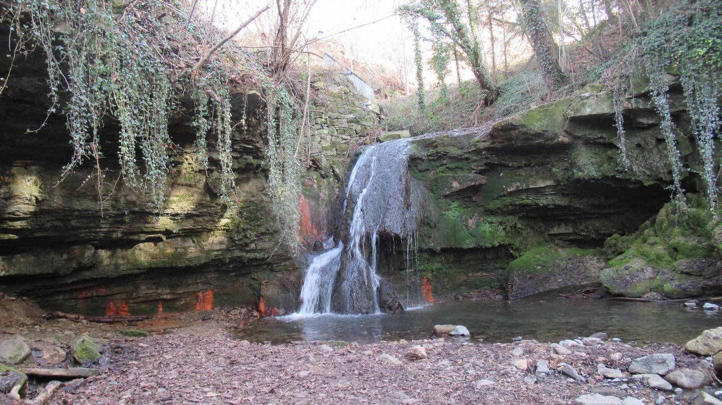 Jeudi 10 février : Rendez-vous au pied du monument aux morts de Vic-le Comte, nous partons dans les rues anciennes où de belles maisons de vignerons sont joliment restaurées. À la sortie de la ville, nous prenons petites routes et grands chemins au milieu des parcelles agricoles et l’on monte vers le Nord-Est : le château des Quaires est bien visible, nous traversons le ruisseau de Pignols, le hameau des Pradas, le ruisseau de Sarsat (nous sommes dans un petit crochet du Parc National du Livradois-Forez) et arrivons à Pardines. Nous repartons vers l’Est, nous sommes en crête et le paysage est vaste : en face de nous tout le Sancy, les Dômes bien sûr, et plus près, la Vierge de Monton, le plateau de Corent et la ville qui s’abrite au-dessous… Des parapentes se lancent du sommet du puy Saint Romain. Nous nous dirigeons vers le Sud et évitons autant que faire se peut la route entre Vic et Laps et trouvons celle qui mène au château des Quaires, qui loge des enfants en attente de placement. Et l’on prend le chemin qui descend dans un petit ravin creusé par le ruisseau de Pignols qui tombe en cascade dans un cirque creusé de grottes. Nous revenons à Vic au milieu des champs puis dans les vieilles rues. Quelle jolie balade, sans difficulté et pourtant paysagère, avec surprise d’une cascade sans montagne, le tout sous le soleil, merci Claude !
