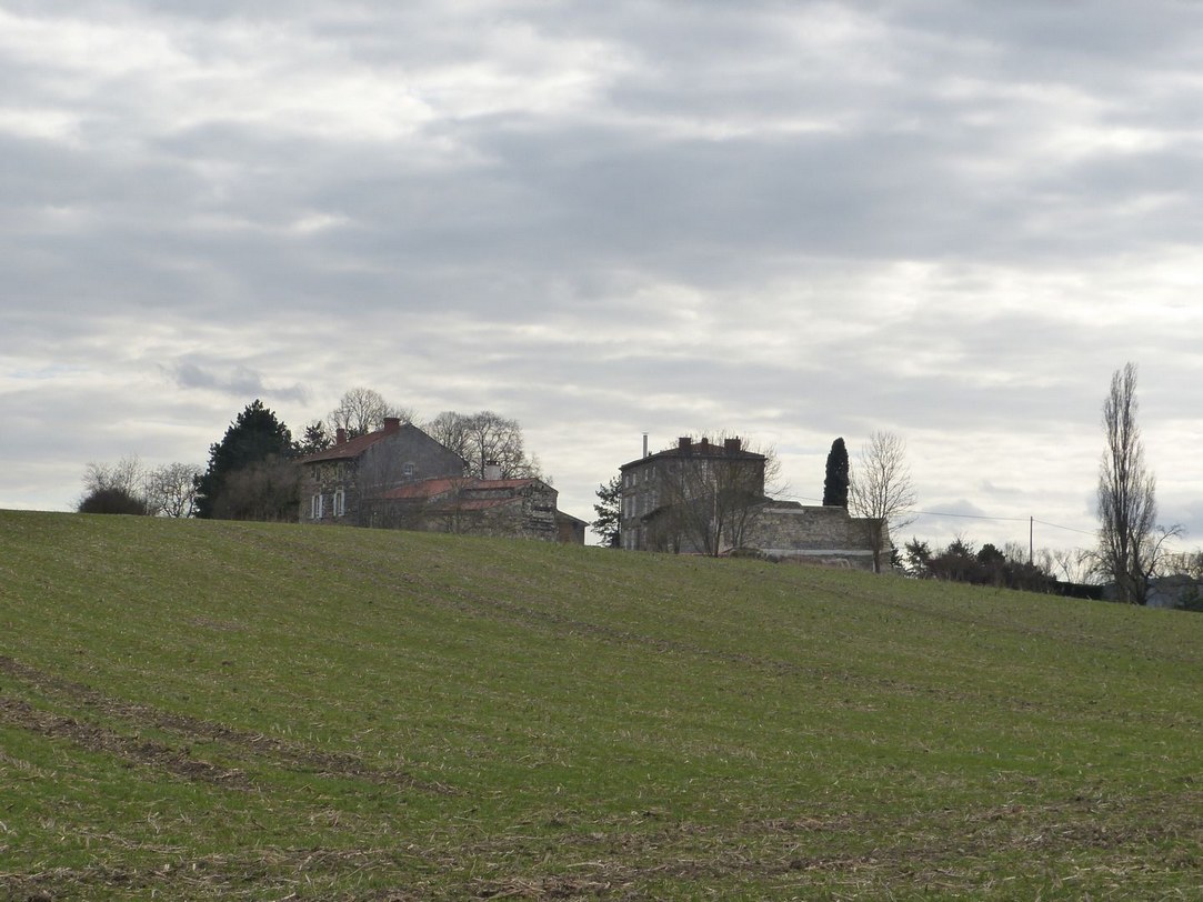 Jeudi 3 mars : Rendez-vous au Nord de Clermont : nous avons traversé la ville pour nous retrouver à cet endroit de Riom qui reste pour les clermontois l’ancienne usine de la SEITA, au temps où la Limagne produisait du tabac. C’est dans cette plaine que nous partons par les grands chemins qui coupent les parcelles agricoles. Si la terre y est si riche, c’est que la Limagne est un bassin d’effondrement, “témoin d’une séquence géologique survenue il y a 35 millions d’années… Le fossé de la Limagne recueille jusqu’à 3000 m d’épaisseur de sédiments”, la faille s’étend d’Enval à Ceyrat et la richesse agricole se révèle dans ces grands domaines d’habitat dispersé composé de maisons de maîtres bourgeoises, résidences secondaires des propriétés acquises après la Révolution. C’est ainsi que nous passons devant les grilles de véritables petits châteaux, au Sud du “Petit marais”, souvenir de la mer qui occupait le bassin avant d’être drainée. Ce sont les lieux-dits : les Grandes Macholles, et après avoir traversé et longé le Maréchat au Pont Battu, Palbot (sur le Gensat) et les Petites Macholles où l’ancienne tour du château a été consolidée par des cercles de béton. Si le parcours est tout plat, sans fatigue !, il permet de rappeler le passé géographique et historique de cette belle Limagne parallèle à la chaîne des Puys, merci Georges !