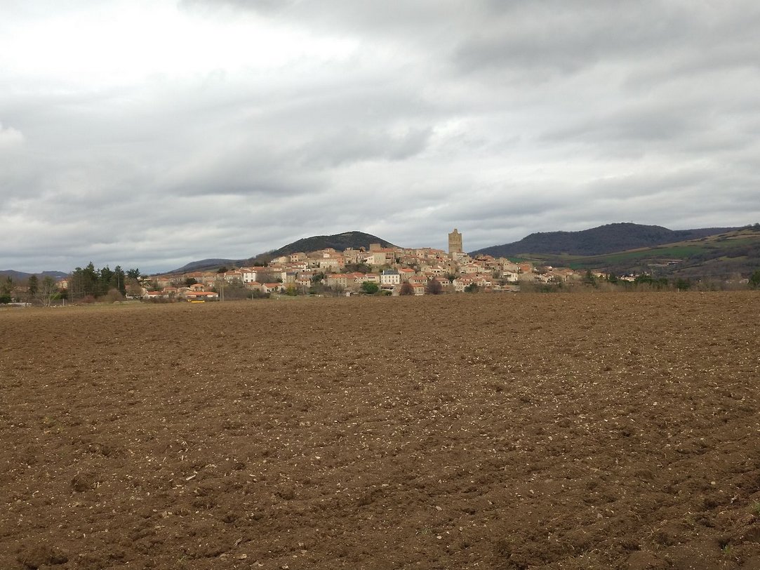 Jeudi 10 mars : Nous nous garons hors les murs du village fortifié d’Espirat, au cœur de la Comté d’Auvergne juste au Nord de Billom. L’intérieur de l’enceinte circulaire des remparts garde des traces défensives, mais la plaine environnante est consacrée aux cultures (traditionnelles ici mais aussi de lavande) et à un grand haras. Le chemin passe entre les bâtiments et quelques prés d’un côté, et de l’autre de grands couloirs délimités où des chevaux de course magnifiques nous font une démonstration de galops ! Il conduit à un ancien moulin, le moulin de la Verse, qui était alimenté par le Jauron, celui-ci formé juste avant par la confluence du Madet et de l’Angaud. Nous traversons et longeons un moment le Jauron avant de bifurquer vers l’Ouest. Nous sommes au pied du petit Turluron, et avant d’arriver à Chas, le petit lac près du Bourbon a, près de la rive, son jet d’eau qui jaillit bien haut. Nous revenons vers l’Est pour rejoindre Espirat dans la plaine où se détachent les buttes : Moissat-Haut, le puy de Courcourt, Beauregard-l’Evèque. Balade vivifiante et facile et pourtant bien jolie et surprenante, merci Claude !