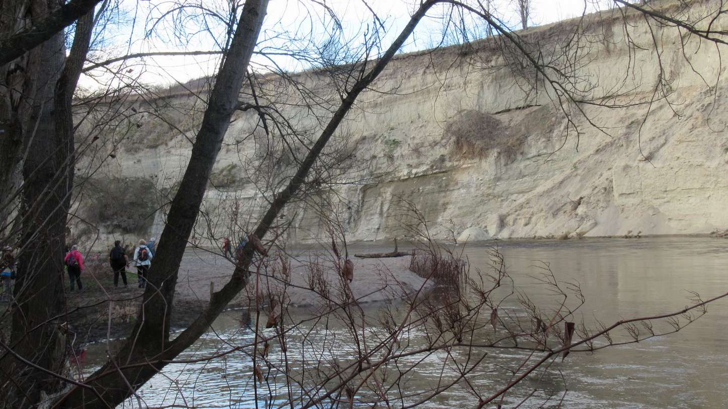 Jeudi 17 février : Nous nous retrouvons tous sur le parking de “l’usine élévatoire”, c’est-à-dire l’usine de traitement des eaux captées entre Dallet et Cournon. Autrefois, “l’usine élévatoire” se contentait de monter l’eau et de la traiter par filtres naturels, maintenant elle la rend parfaitement propre à la consommation de toute l’agglomération clermontoise. Nous prenons le grand chemin qui surplombe l’Allier rive gauche et conduit à Dallet par Malmouche et “la mine des rois” qui a longtemps fourni du bitume. Nous traversons le vieux pont couvert de Dallet et suivons à nouveau la rivière, rive droite, en fond de vallée cette fois. Avant de longer la zone des très nombreux captages de la nappe phréatique qui entoure le lit de l’Allier, nous prenons un petit chemin dans le bois qui nous conduit au pied de la falaise blanche de Malmouche que nous avons dominée un peu plus tôt. C’est un nichoir idéal pour les hirondelles de rivage au printemps. Nous franchissons la passerelle qui ramène rive gauche, mais on ne peut pas traverser l’usine élévatoire… Il reste une petite boucle à parcourir pour rejoindre les voitures, mais quel beau parcours par belle journée, merci Georges !