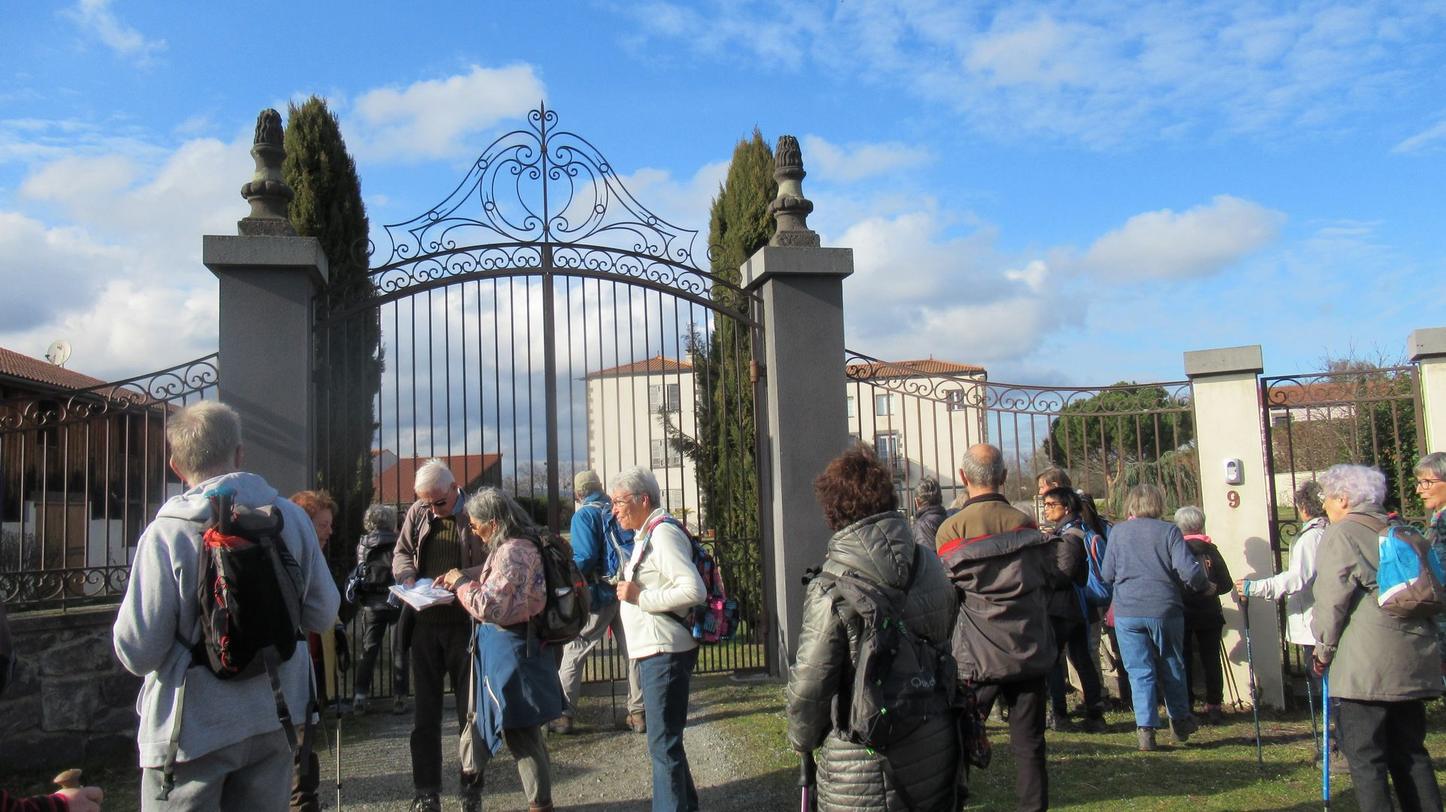 Jeudi 3 février : La place de l’église Saint Pardoux de Blanzat est trop petite, certains d’entre nous ont trouvé à s’y garer, d’autres vont jusqu’à la Muscade, et nous partons tous vers l’Ouest par un grand chemin qui monte en pente douce. Après le bassin d’orage qui recueille les eaux du plateau, nous allons vers le Nord : nous sommes sur “le plateau de la Bade”, tout près du village des Mauvaises. Ces deux noms nous intriguent mais on n’en connaît pas l’origine ! Lors de la montée, nous avons longé des rochers creusés de grottes qui peuvent être profondes. Sur le plateau, le paysage est vaste, surtout urbain vers l’Est, au Sud, Clermont nous est caché par les Côtes, et à l’Ouest on ne voit que le sommet du Puy de Dôme. Nous prenons le “chemin des lapins” et l’on constate qu’on a bien grimpé : Blanzat est à 200 m en dessous, le long du Bédat. Nous rejoignons la ville : le centre garde de belles maisons anciennes (la mairie, de grandes maisons de vignerons), une tour, un trompe l’œil abstrait sur un grand mur, œuvre d’un peintre local. Le soleil nous a accompagné tout au long et il fait doux : une jolie randonnée bien agréable, merci Jean-François et Jean-Gabriel !