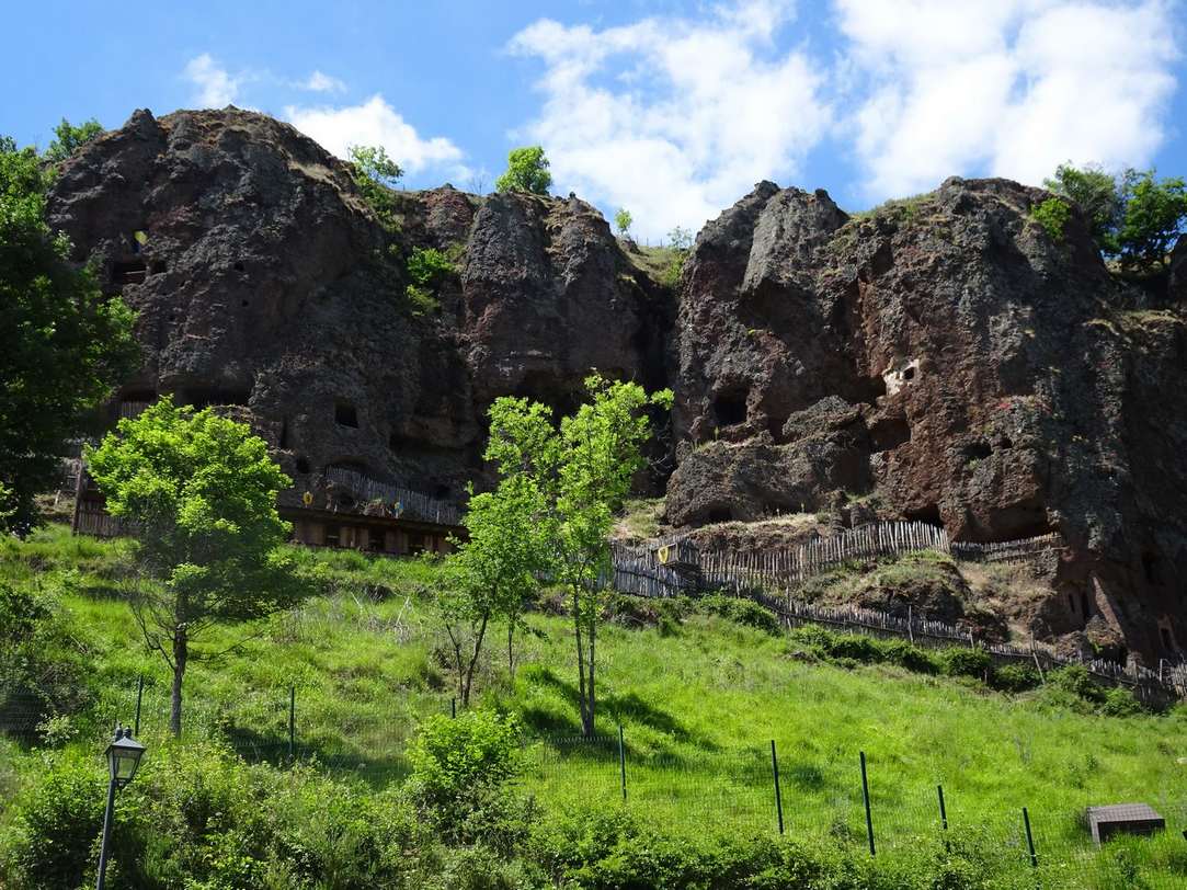 Mercredi 27 avril : Nous démarrons, sous un beau soleil, du château fort de MUROL du XIIè siècle, bâti sur un promontoire basaltique qui domine le village de MUROL, Nous empruntons un chemin ombragé sur 1 km environ et nous commençons notre descente sur CHAUTIGNAT pour rejoindre la cascade, difficile d’accès. Nous continuons en direction des grottes de Rajat situées au dessus du chemin, ainsi que plus loin les grottes de Châteauneuf qui surplombent ST-NECTAIRE. Dans les prés vert tendre, nous remarquons des anémones Pulsatille et des orchidées sauvages. Nous passons à côté d’un dolmen surmonté d’une croix, puis nous descendons en direction de SAPCHAT, tout en admirant la superbe vue dégagée sur le château de MUROL et du SANCY. À SPACHAT, passage sur la Couze-Chambon puis à côté de l’ancienne maison du sabotier, et nous rentrons par le village de Groire et une remontée sous le château. Quelle belle randonnée ! merci Claude !
