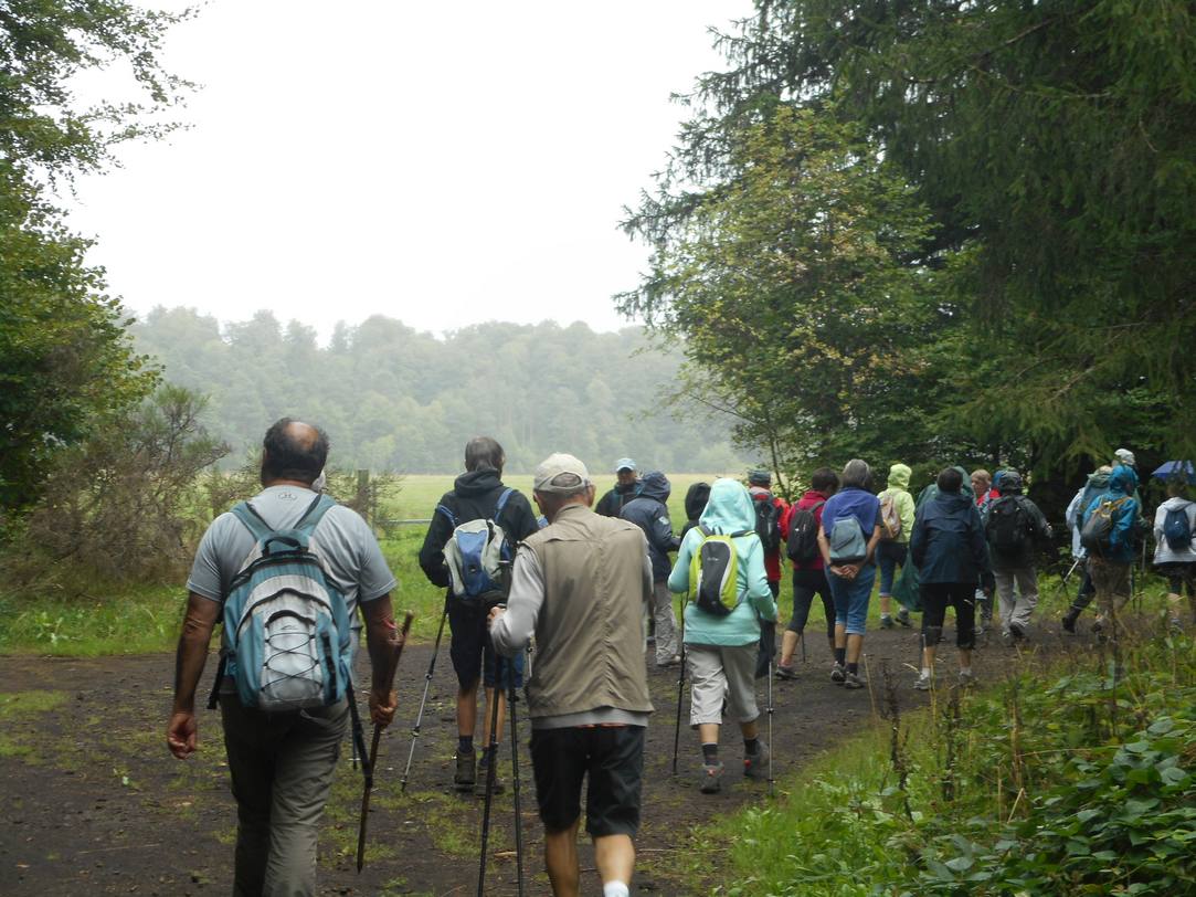Mercredi 14 septembre : Grand plaisir des retrouvailles ! Nous sommes nombreux au parking des puys de la Vache et de Lassolas, et nous partons dans le bois au pied des deux puys et près de celui de Mercoeur. Au grand carrefour des chemins, nous descendons plein Sud vers les puys de Montjuger et Montchal, presque jusqu’à Randanne, pour remonter vers Recoleine et profiter de la vue au loin sur le Sancy alors que nous sommes tout au bord de la chaîne des Dômes. A la chapelle proche de Recoleine, nous prenons la grande piste qui remonte vers Laschamps et qui est à découvert ou en orée de bois. Ici, c’est le pied du Puy de Dôme. Un peu avant d’être à nouveau à l’abri des arbres, quelques gouttes de pluie nous rattrapent mais bien peu de temps, et nous rejoignons le parking dans la forêt. Après l’été, c’est le moment où nous apprécions de retrouver ces paysages à la fois proches et familiers, en même temps que les discussions chaleureuses entre nous; merci Claude !