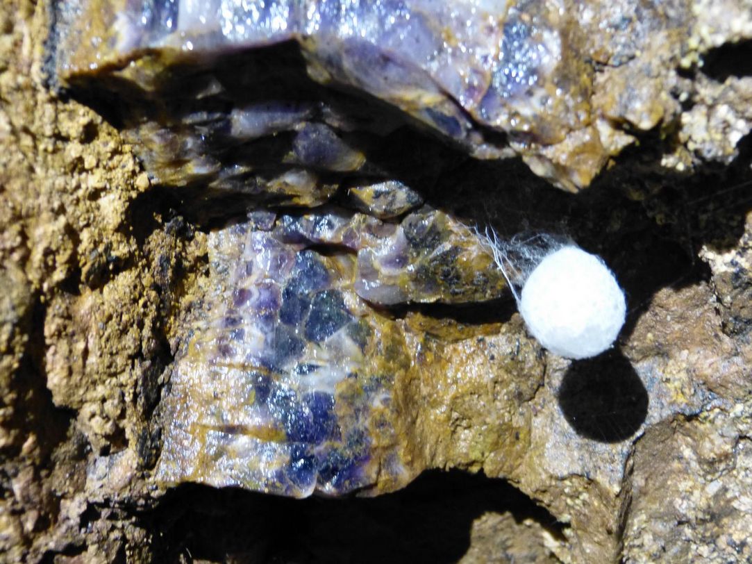 Jeudi 15 septembre : Départ de bonne heure pour une belle journée enfin possible ! C’est qu’il faut une heure pour se retrouver en plein Livradois, mais la route est belle jusqu’à Champagnat-le-Jeune où Jonathan nous rejoint pour nous faire visiter le site de la mine de Pégut. Dans le bois très touffu, il nous raconte sa passion pour les minéraux et l’exploitation de l’améthyste dont les filons parcourent le granit de cet endroit accidenté et secret. Dans la mine que nous pouvons voir, le plafond est strié par la pierre mauve et des araignées tissent des toiles de boules blanches…