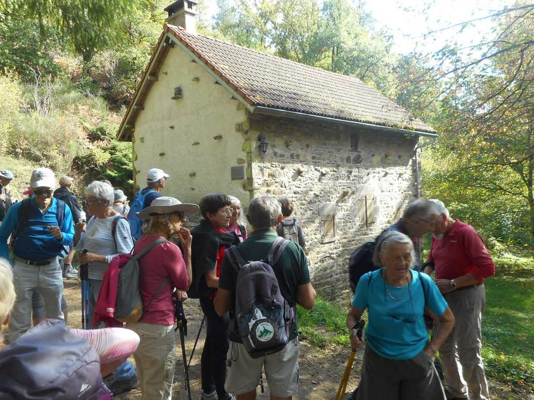 Au départ de Sayat, 14 marcheurs découvrent le moulin à huile (toujours en service) et les cascades du Bédat. Après une visite de l’église, toujours au bord du Bédat, un lavoir récemment restauré apparaît avant la montée très abrupte jusqu’au repaire des Gaulois, avec vue sur la plaine de Limagne, les villes des Alentours et Thiers au loin dans le soleil. Nous traversons la ligne SNCF avant d’arrivée à un quartier tout neuf « La Piala » du village de l’Étang. Le groupe fait une pause près d’une sculpture, une harpe, commémorant le jumelage de Chanat-la-Mouteyre et Cappoquin en Irlande. Nous redescendons sur Sayat en longeant un joli ruisseau en cascade, « le Cordoulet ».