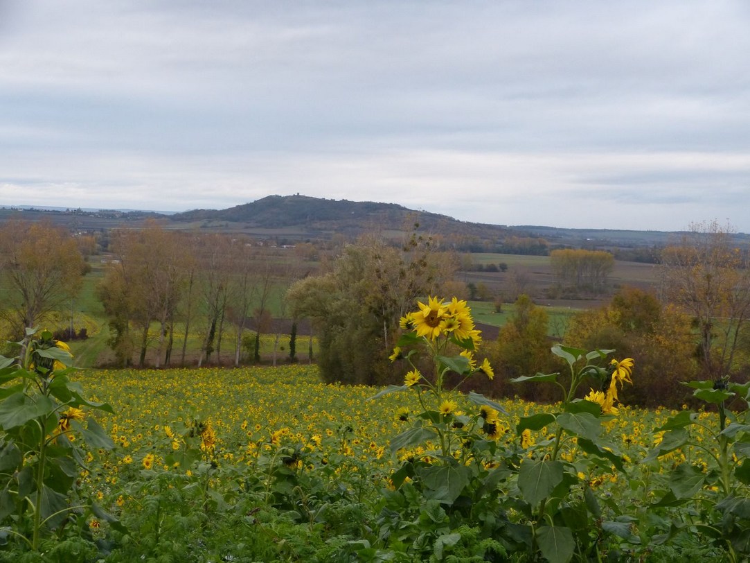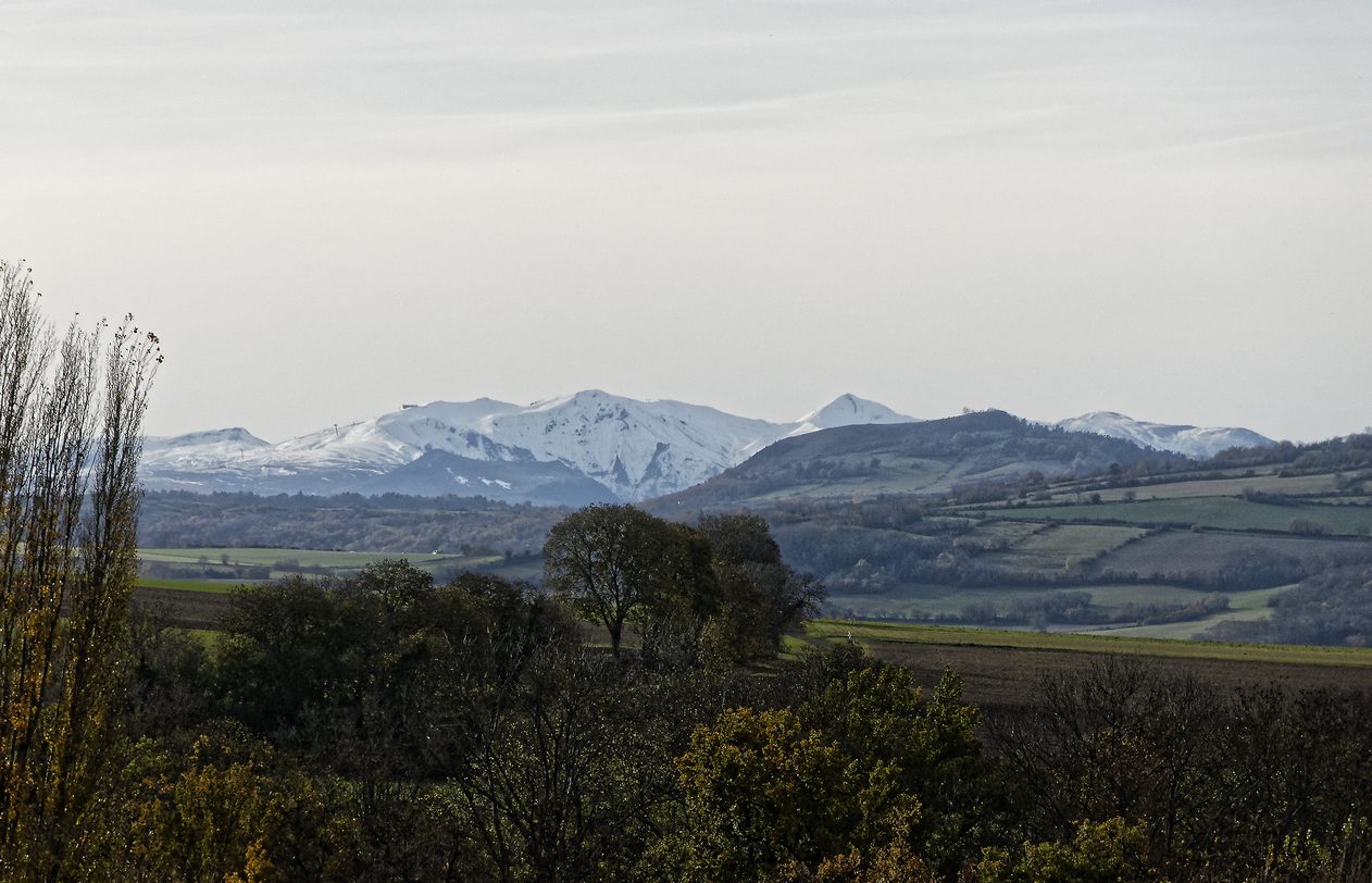 Dimanche 27 novembre : Nous sommes nombreux dans le petit bourg de Lachaux, “entre vignes et Comté”, et dès le départ, le paysage est varié, étonnant, entre les multiples collines, le plateau de Corent contre lequel s’abrite le village, tous les gros bourgs du val d’Allier. Nous partons vers la rivière : Montpeyroux, le château de Chadieu… et au loin, surprise : le Sancy est enneigé, le Puy de Dôme émerge au dessus des buttes environnantes. Nous suivons la voie ferrée en remontant vers Brolac, où une plaque rend hommage à la Vierge à propos d’un épisode de la dernière guerre. Il y a des vignes, des tonnes, des pigeonniers entre les grands champs de cultures, et l’on voit d’un côté Authezat et la Sauvetat, de l’autre Saint-Maurice, les puys Saint-Romain et d’Ecouyat. Après avoir traversé la grand’route, nous continuons vers le Nord jusqu’à l’impeccable zone artisanale de Longues puis redescendons en direction de Vic, mais avant la ville, nous revenons vers Lachaux par de grands chemins où là encore, on voit le Sancy, le Cézallier, la chaîne des Puys dans de belles couleurs de fin d’après-midi. En arrivant au village, nous empruntons de petites ruelles entre les maisons en arkhoze : que de belles choses ! Merci Claude !