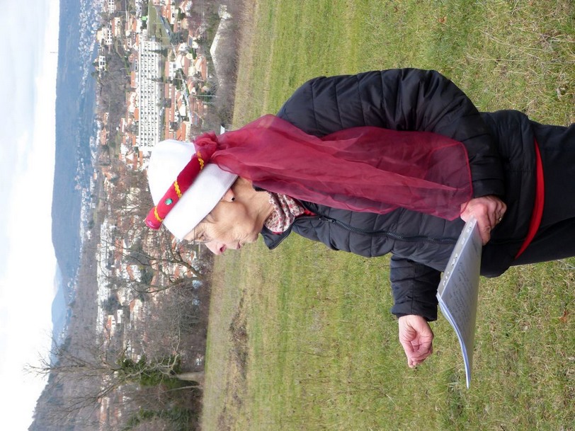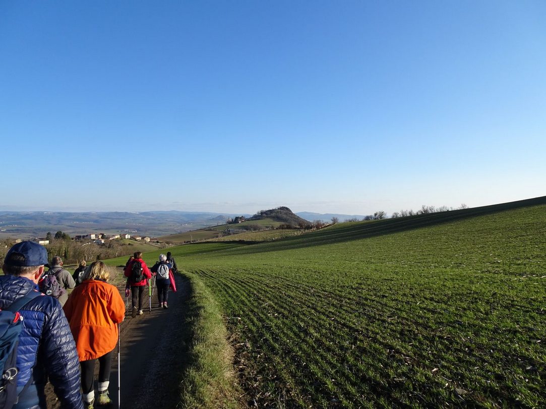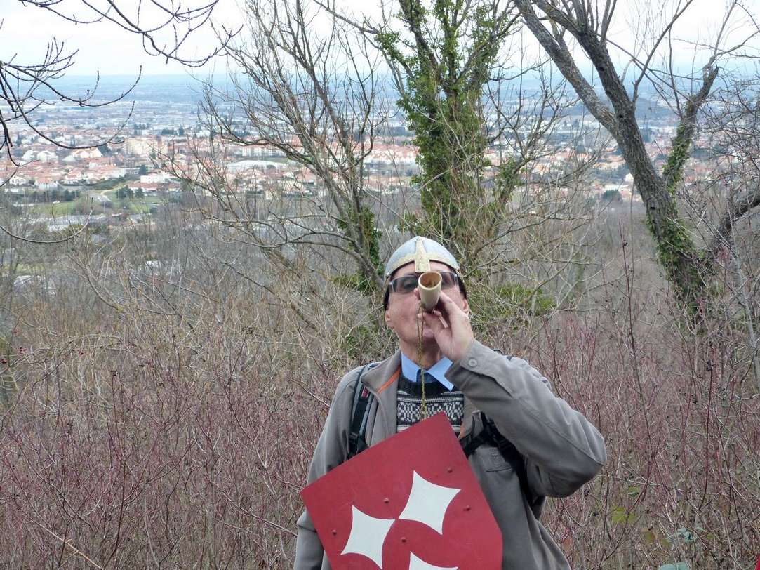 vont nous conter, au fil des étapes, l’histoire de la Dame de Montrognon. Elle nous vient d’une chronique qui relate des faits réels, même si les chroniqueurs de ce beau Moyen-Âge des XIII ème et XIV ème siècles étaient un peu moins rigoureux que nos historiens modernes. Mais c’est une belle histoire où il est question du mariage du Seigneur de Montrognon, affilié au Dauphin d’Auvergne, avec la belle héritière de la Maison d’Allanche, de troubadours et de “fine Amor”, de luttes de pouvoir, de l’aventure de l’ordre des Templiers et de ses déboires avec Philippe le Bel…. Tout cela dans les lieux que nous arpentons en profitant du paysage autour du puy de Chomontel, et après les Montants, sur Romagnat, Clémensat, Ceyrat… Une bien jolie boucle et sa lointaine histoire qu’il faut connaître quand on habite ici ! Grand merci Suzanne et Georges, bonne année à tous !