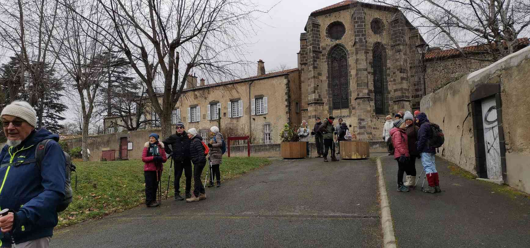 Jeudi 26 janvier : Ce jour encore, un bon groupe, et pourtant, il fait froid ! Mais à Mozac le terrain est plat et nous pourrons maintenir l’allure pour nous réchauffer le long de l’Ambène qui irrigue tout ce territoire par ses multiples dérivations. Il y a parfois jusqu’à trois vannes qui dévient l’eau dans des canaux secondaires. La rivière est limpide, le chemin agréable, et presque en pleine ville, il y a des jardins pittoresques. Nous nous retrouvons vers l’église abbatiale du XII ème, bijou roman où l’on peut admirer quelques trésors et, outre les chapiteaux en haut des colonnes, les chapiteaux conservés après un tremblement de terre dont on peut voir les sculptures de près ! Nous retrouvons l’Ambène pour remonter son cours vers l’Ouest (elle prend sa source près du Manoir de Veygoux) jusqu’à la voie ferrée qui va à Volvic, puis nous revenons, toujours par la “coulée verte”. C’est un bien joli parcours, où l’eau apporte la campagne en ville, merci Bernard !