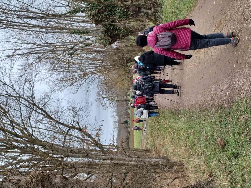 Jeudi 9 février : Le grand parking à l’entrée de Pérignat sur Allier nous voit nombreux ! Nous partons vers le Nord pour rejoindre l’étang des Plançons, dans le bois le sol est couvert de perce-neiges et nous faisons le tour de l’étang. Quelques pécheurs y sont, un panneau donne toutes les instructions nécessaires à la pêche dans ce lieu. Nous rejoignons l’Allier, très haut, et longeons la rive gauche, entre rivière et bois épais, avec des espaces où il y a des captages d’eau et le long d’un grillage, des arbres qui ont laissé tomber de gros fruits vert-clair, granuleux. Ce sont des “orangers des ausages”, une espèce venue d’Amérique du Sud. Nous passons sous le pont de Cournon et rejoignons le Nord du grand plan d’eau des Varennes, étape pour les oiseaux migrateurs… mais ce n’est pas la saison ! Nous rejoignons Pérignat après cette belle boucle facile entre l’eau et la végétation encore hivernale mais déjà fleurie, merci Claude !