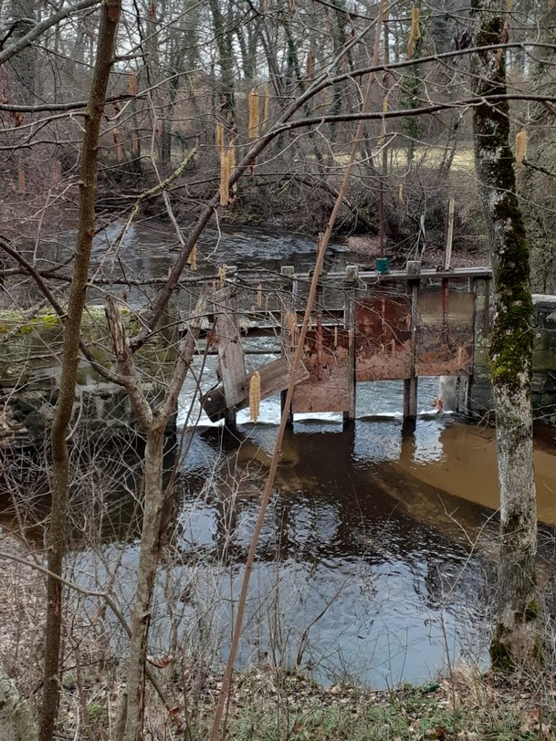 Jeudi 23 février : Le village de Champeyroux est important et quand nous nous y sommes tous retrouvés, nous partons le long de la Morge qui a pris sa source à Laschamps et va gonfler le Bédat avant de rejoindre Maringues et se jeter dans l’Allier. Mais entre Champeyroux et Buxerolles, c’est un joli cours qui serpente sous les arbres, ponctué de moulins et de lavoirs. À Buxerolles, on le traverse sur un pont métallique de modèle Eiffel et on revient sur sa rive droite en contournant Villeneuve-l’Abbé puis en suivant à nouveau l’orée du bois qui le suit. Entre les chemins des deux rives, la rivière zigue-zague plaisamment, tantôt large, tantôt étroite, tantôt marécageuse, toujours embroussaillée. Au retour à Champeyroux, on la traverse à nouveau sur un pont métallique, mais minuscule cette fois. C’est un bien joli parcours où là encore, la pluie annoncée nous a épargnés, merci Bernard !