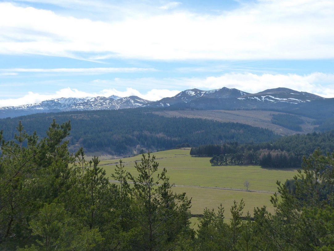 Mercredi 22 mars : Zanières, exactement entre Dômes et Sancy, par temps déjà printanier et encore un peu frais. Le paysage est vaste et très vert, même s’il y a encore peu de fleurs, mais elles vont sortir ! Nous longeons le côté Nord du puy de Monténard et partons vers l’Ouest puis le Nord et avant le village de Souverand dont on a vu le plan d’eau, nous bifurquons sur Pessade. Le Sancy est face à nous, il reste quelques plaques de neige mais elles se raréfient. Le toit de lauzes de l’ancien four est bien beau, le village situé sur le GR 4 (Atlantique-Méditerranée par l’Auvergne !) a de jolies maisons anciennes. Par les grands chemins d’altitude, nous revenons vers l’Est et cette fois, en face, c’est la chaîne des Dômes jusqu’à Saulzet-le-Froid ; l’église est belle sur la butte, elle est prolongée par la mairie, bien rénovée, comme beaucoup de maisons ici encore : jolis villages mais bien déserts, même si nous avons croisé plusieurs tracteurs et vu de grosses fermes comme celle du Moulin de Saulzet. Tout au long, il y a beaucoup de croix, en pierre ou en fer sur socle rocheux, et le retour à Saulzet est rapide. Beau parcours dans “nos” montagnes, merci Claude !