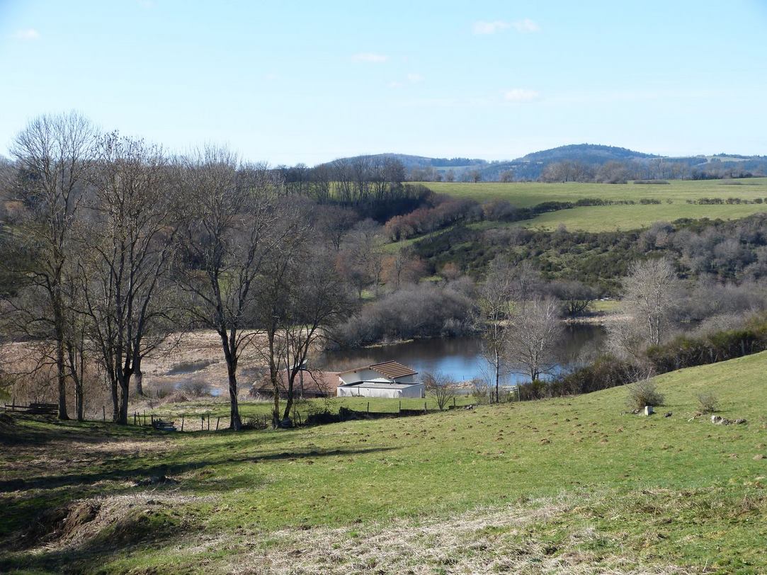 Mercredi 1er mars : Vent et froid se sont calmés, et à Saint-Bonnet d’Orcival, il fait soleil au pied de l’église même si la brume persiste à l’Est. Nous allons en direction du Sud-Est par la croix de Paragude jusqu’à Neuville d’où nous partons vers l’Ouest et le Sud : la Marronie, la Pointésie sont des petits hameaux où se retapent d’anciennes fermes à côté d’autres plus récentes au milieu de ce paysage d’élevage : peu de vaches encore dans les prés, mais quelques beaux chevaux de race rustique. Après avoir traversé le Sioulet, nous montons sur l’autre versant et là, c’est Juegheat au pied d’un Gravenoire qui n’est pas le nôtre ! Le grand chemin domine la vallée de la Sioule (on reconnaît le château de Boissières), tous les reliefs du Nord du massif du Sancy sont bien visibles mais à l’Est, le Puy de Dôme est toujours dans la brume. En revenant à Saint-Bonnet, nous longeons la Sioule qui passe sous de jolis ponts, des lotissements neufs laissent la place au vieux village autour de l’église. Montées et descentes se sont succédées tout au long et finalement, le temps était idéal pour marcher : fraîcheur et soleil, merci Claude !