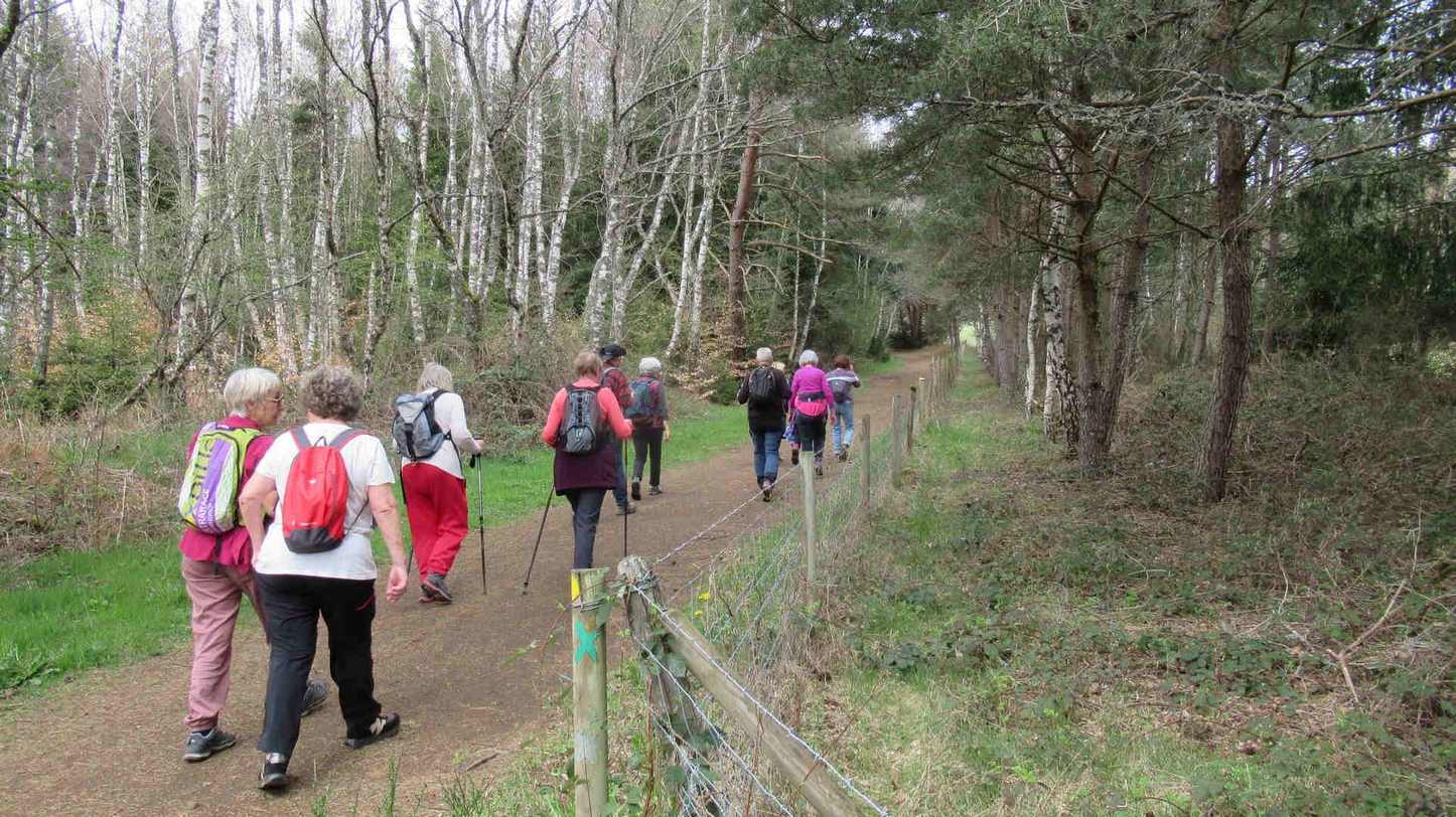 Jeudi 9 mars : Ce jeudi, il pleut encore à Ceyrat mais nous partons quand même jusqu’au village de Fontaube au delà de Saint-Ours-les Roches et nous nous retrouvons là une trentaine, et il ne pleut pas ! Nous sommes au pied des derniers volcans de la chaîne des puys côté Nord : Louchadière et la Nugère sont très visibles et pourtant les chemins ou les petites routes sont faciles jusqu’à l’Espinasse. Là, un tilleul “remarquable” (peut-être un Sully) dont le tronc mesure plus de six mètres de circonférence doit être conservé. Mais dans le village, c’est surtout le site mémoriel des bâtiments qui ont abrité la naissance du Premier Corps Franc d’Auvergne qui est impressionnant, remarquablement entretenu et documenté. Après l’avoir visité, nous traversons puis suivons la voie ferrée et le chemin longe une vaste narse. Des forestiers coupent des arbres qui, trop nombreux, l’assècheraient. Temps idéal pour marcher, sans pluie alors qu’en revenant à Fontaube on entend un bruit d’orage au loin mais nous sommes dans les voitures ! C’est une boucle très belle et l’étape sur le lieu de la Résistance est émouvante et intéressante, merci Claude !