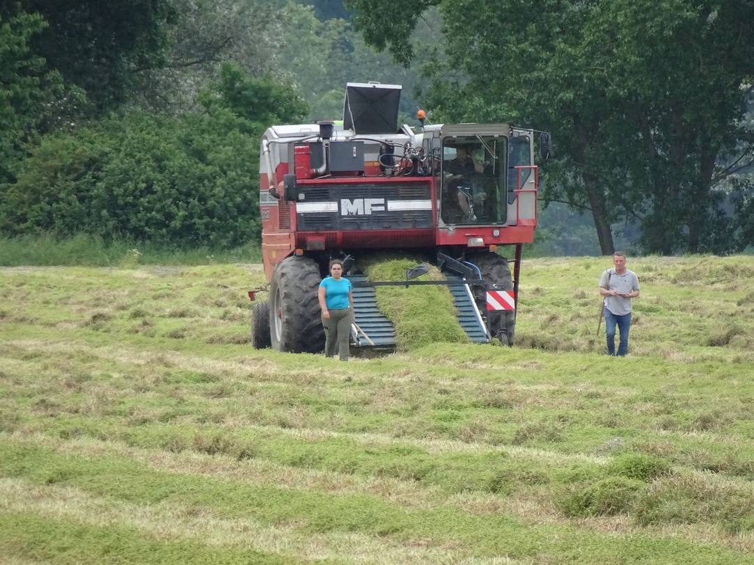 Première halte au croisement de 3 communes (Les Martres, Chavaroux, Joze). Depuis la Croix du Beaudet, les faubourgs de Joze sont là. Après avoir traversé deux fois la D1093, une surprise nous attend : une moissonneuse-batteuse en action. Question ? Moisson de graines de mâche. Nous longeons un immense champ d’oignons destinés là aussi pour la graine.