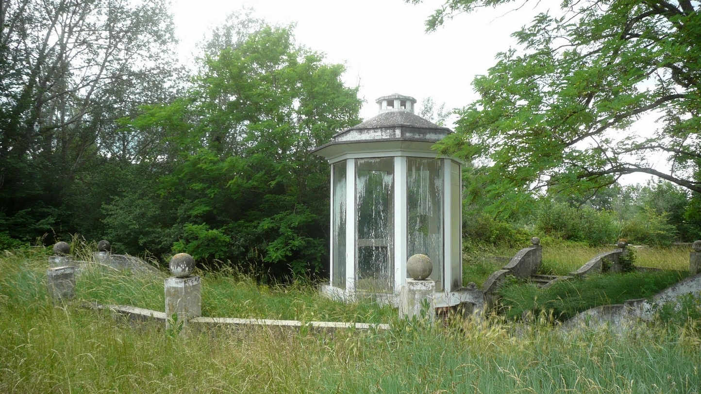 Plus étonnant, le bâtiment qui abrite la source Valois ! De grosses bulles au centre du bassin ; la source est bien là ! Il ressemble à un mini château-fort en roche volcanique avec un donjon !