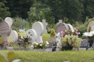 Un petit aperçu sur les frontons de pelote basque au passage, le lavoir rénové, deux oratoires, et surtout le cimetière plus récent que celui qui entoure l’église et qui comporte de nombreuses stèles discoïdales surmontées du cercle « Lauburu », « quatre têtes » représentant les quatre éléments, et qui symbolise le pays basque.