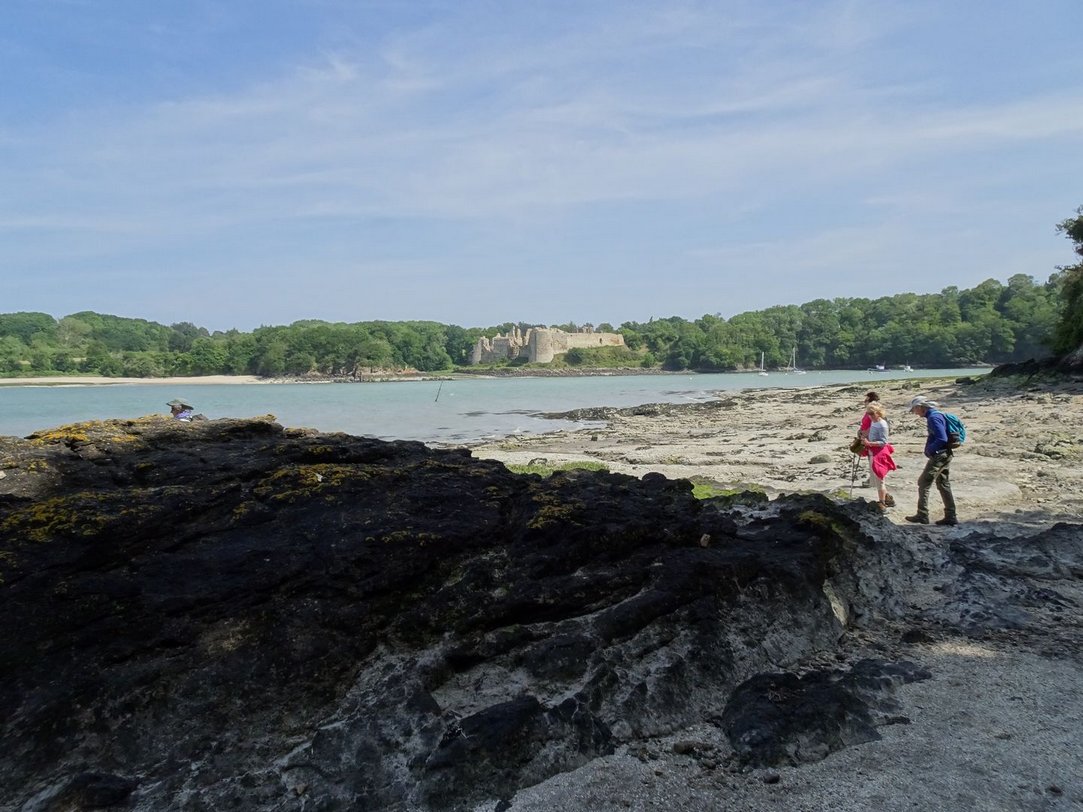 Le mardi après-midi, c’est vers l’Est que nous partons : le Guildo où nous passons à côté d’un moulin à vent, puis d’un moulin à marée pour aller jusqu’au château des ducs de Bretagne construit par Gilles de Bretagne. Les ruines sont importantes et la vue magnifique sur l’estuaire de l’Aguennon que la marée montante envahit.