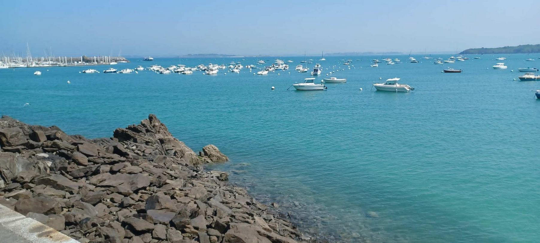 Départ tant attendu pour la Bretagne Nord, nous sommes tous à l’heure et retrouvons Thomas qui nous aide à charger les bagages et nous partons à 7 h 45… Exactitude qui ne se démentira pas pendant toute la semaine ! C’est qu’il y aura beaucoup à faire ! Pour le moment, l’autoroute bien monotone (un peu trop plate dès que l’on quitte nos montagnes), mais après un repas à l’aire du Mans (NB cette année fête le centenaire des 24 heures) et quand on prend les routes qui traversent les villes, nous sommes en Bretagne : maisons et églises en granit, et puis l’estuaire de la Rance : la mer, enfin, même si elle est à marée basse !